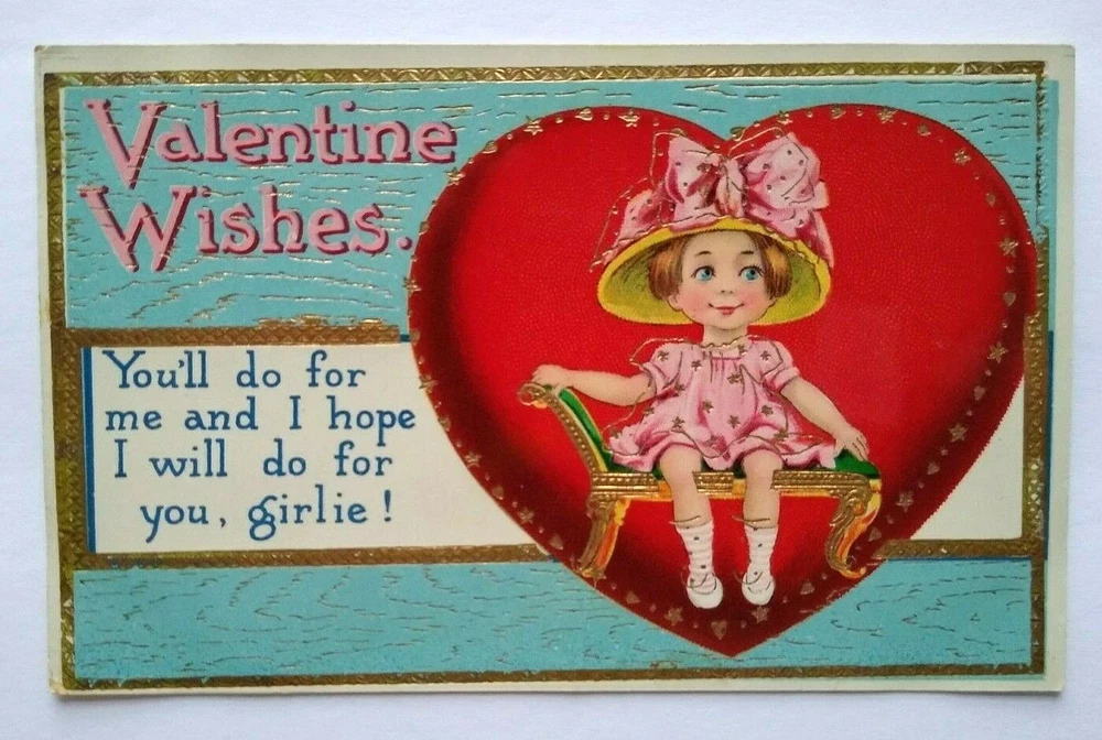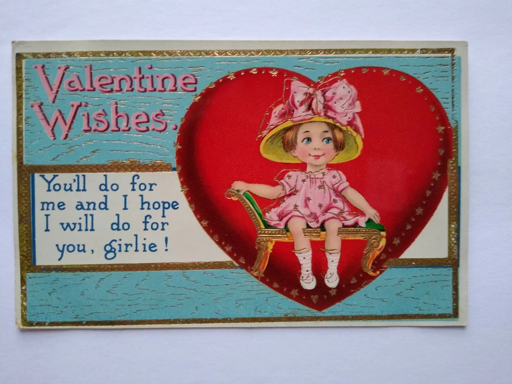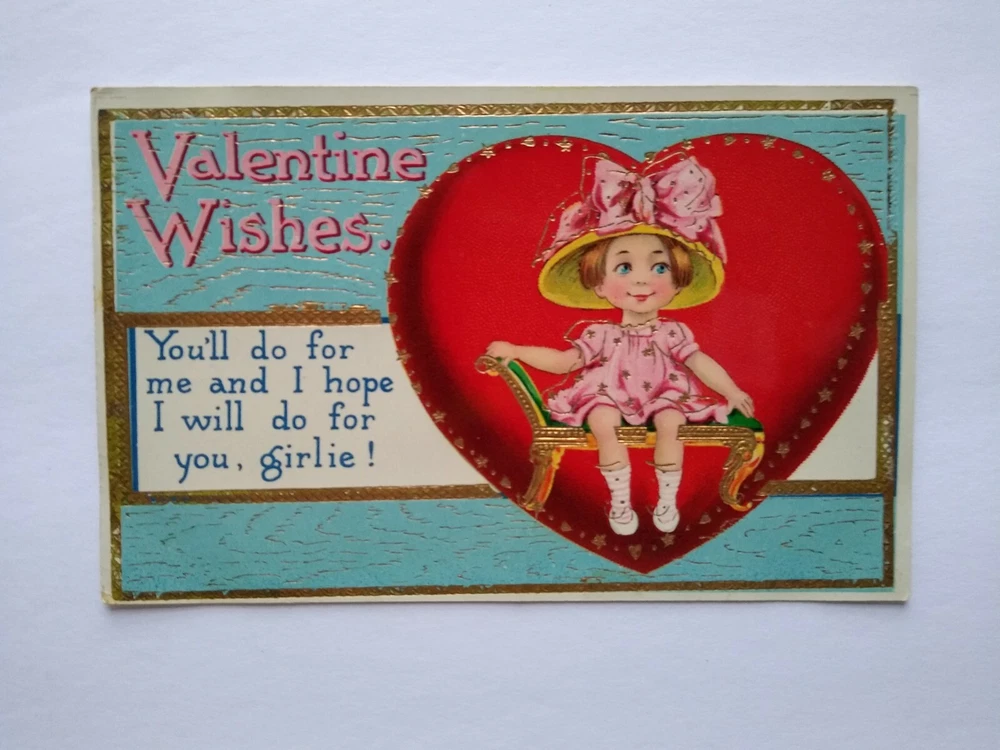 Valentines Day Postcard Girl Seated Inside Heart Barton & Spooner Series 7130 Vintage gel coat finish Valentine postcard. Printed in Germany, company logo, and series 7130 on back. Clean card with light surface wear and corner/edge wear. Writing on back but never mailed. See photos. Stock #val5. Additional Halloween, Santa, Christmas, holiday postcards are in our eBay store. SHIPPING Bundle and save by using cart and making single payment. International buyers are responsible for any import fees/taxes. ABOUT US Seller of vintage collectibles, retro gifts, advertising, artwork, vinyl records, pinball and arcade game flyers and parts, Mad magazines, antique Halloween and holiday postcards, Christmas items, super hero memorabilia, horror themed art, fun stuff. MORE POSTCARDS AND EPHEMERA IN OUR STORE.