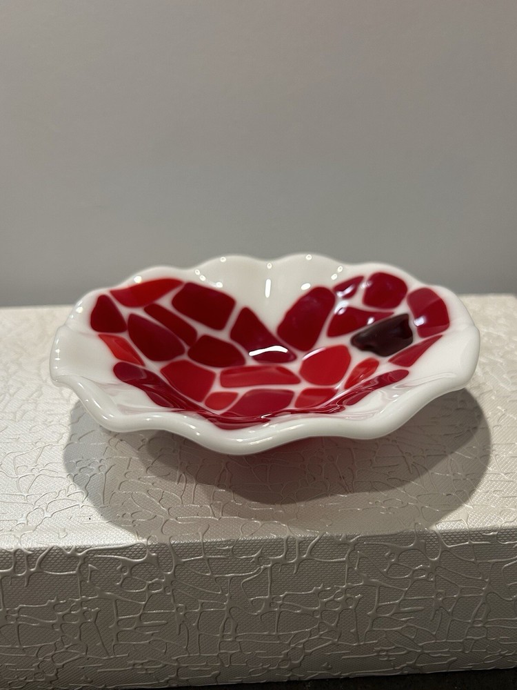 Valentines Fused Glass Heart Trinket Dish for Jewelry and Keepsakes