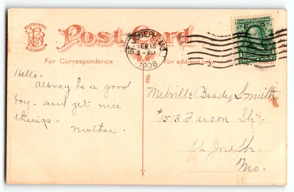 This vintage postcard features a charming image of a Dutch girl wearing wooden shoes, with a Valentine's Day theme. The lithograph was originally published by H.I. Robbins in 1907 in the United States. The postcard is a standard size of 5.5 x 3.5 inches and has a divided back, with a postmark indicating that it has been posted. The postcard is perfect for collectors of vintage postcards or those who appreciate art, holiday, people, greetings, and children themes. The postcard is made of paper and is an original print from the pre-war era. Posted with 1908 cancel. Antique original vintage post card. Has writing on front, soiling, corner dings, and age wear. Stock #val122. Additional postcards are in our store. Use cart to bundle and save. All post cards are old originals and may or may not have writing on back.