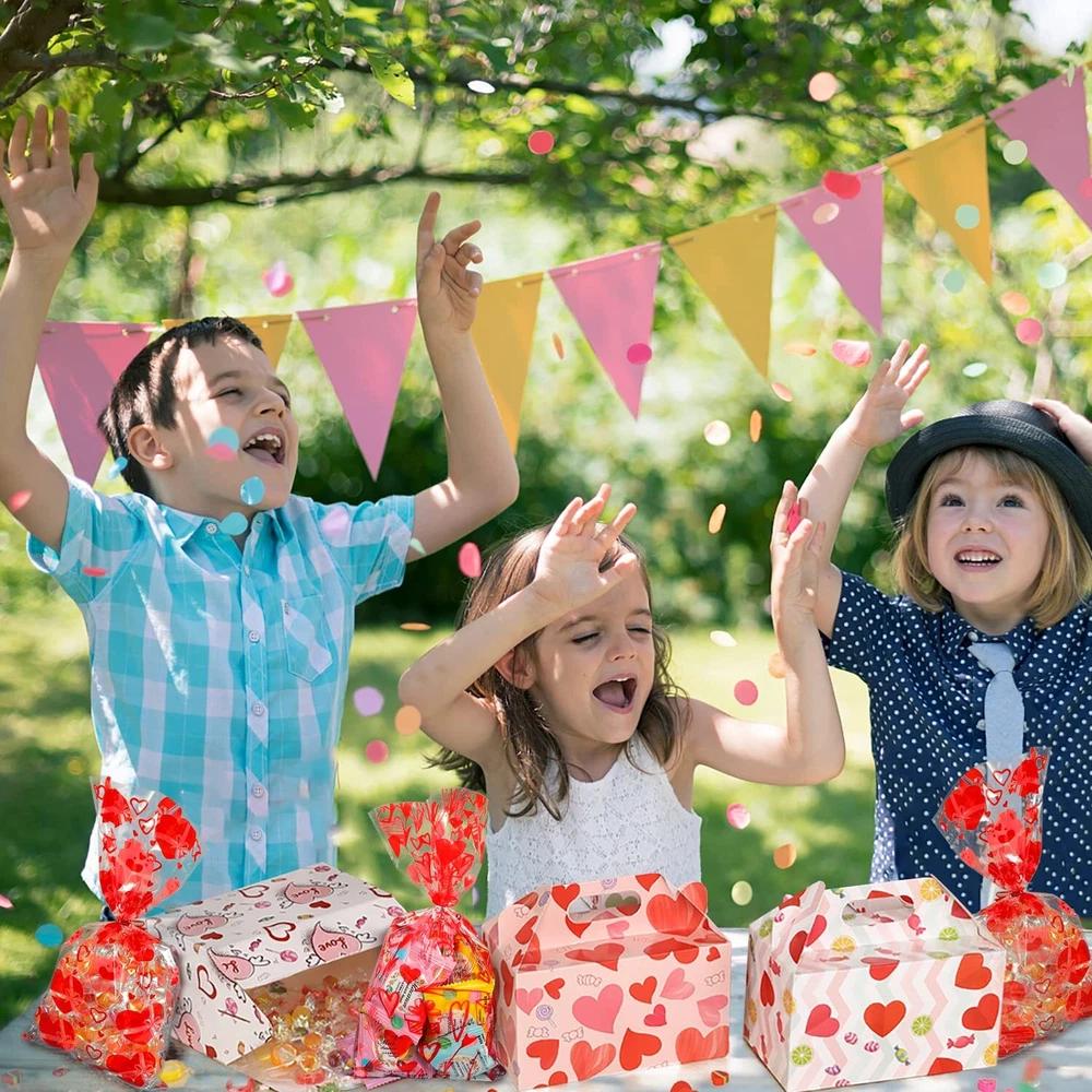 While traditionally a celebration of romantic love, Valentine's Day is also a perfect time to show your favorite people how much they mean to you. Need some gift ideas? An elegant and practical treat box is the most important thing you need to warp a gift. We've got 'em! 7 Different Valentine's element designs: These candy bags have 7 different designs based on classic heart patterns, candy, cake and love elements, which will help to create a festive atmosphere for your parties. Package up tons of fun for your Valentine's Day: These treat boxes can put candy, cookies, biscuits, chocolate, snacks, craft and some small gifts. Great for Valentine's party decoration, which is widely used and will add more fun for the coming Valentines! Why Choose Our Valentines Party Treat Boxes? Perfect size for wrapping gift: 3.55 x 3.55 x 6.3 inches treat bag meets your party supply. Each goody bag is well designed which is perfect for wrapping gifts. Well Made: These candy bags are made of super thick safety cardboard, which is lightweight and durable enough, easy to assemble and portable. Seven Patterns in Different Colors: In this purchase, you will get 28pcs beautiful Party Paper Treat Bags with 7 different designs, 4 bags of each design. Classic Valentines' elements including red hearts, candy, cake, love words and so on. Specifications: Material: Cardboard paper Color: 7 patterns as picture shows Size: 9 x 9x 16 cm/ 3.55 x 3.55 x 6.3 inches Package Including: 28* Valentines candy bags 100% Satisfaction : If our product does not meet your expectations or if there is any problem, please us first 🍬 Great Value Valentine's Gift Bags: Our package comes with 28 pcs super thick paper candy bags for Valentines' party supply. Sufficient quantity with the newest 7 different Valentine's heart pattern designs, enough to meet your party's need. What's more, the newest packages come with 40pcs plastic cellophane candy bags. With those beautiful wrapping kits, we believe both kids and adults will love them. 🍬 Super High-Quality Valentines Treat Boxes: These goodies bags were made from quality thick cardboard, outside vivid printing and won't fade out, durable paper cardboard can use many times. Plastic candy bags are also perfect for kids to pack candy. Safe and non-toxic material makes it great for packing food and cookies, great ideal for kids' Valentine' party supplies. 🍬 Perfect Size & Easy to Assemble: Each piece of Valentine's bag is 9 x 9x 16 cm/ 3.55 x 3.55 x 6.3 inches in size, great for wrapping treats and celebration favors. Just simply install as our picture shows and then put candy, cookies, slice cake, or anything you want inside. (Note: Please refer to the product size first before purchase.) 🍬 Best Ideal for Your Valentines: This candy bag is a good choice for Valentine's parties, Valentine's day gifts packing, various festivals and other celebrations. They are good packages for little gifts, treated as candy & cake boxes, give out cookies or memorable souvenirs to your guests and so on. 🍬 & SATISFACTION: We specially selected high-quality Raw Materials to manufactured these candy boxes, and always try our best to meet customers' satisfaction. We provide 30 days of Money Back, if you have any issues with our products, please feel free to our team at any time. There is no doubt is your best choice!