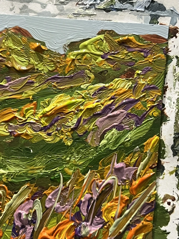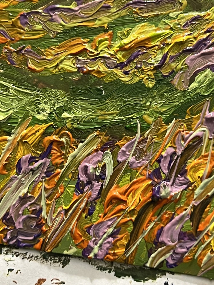Valley Wildflowers Meadow Original Oil Painting Highlands Hills Artwork
