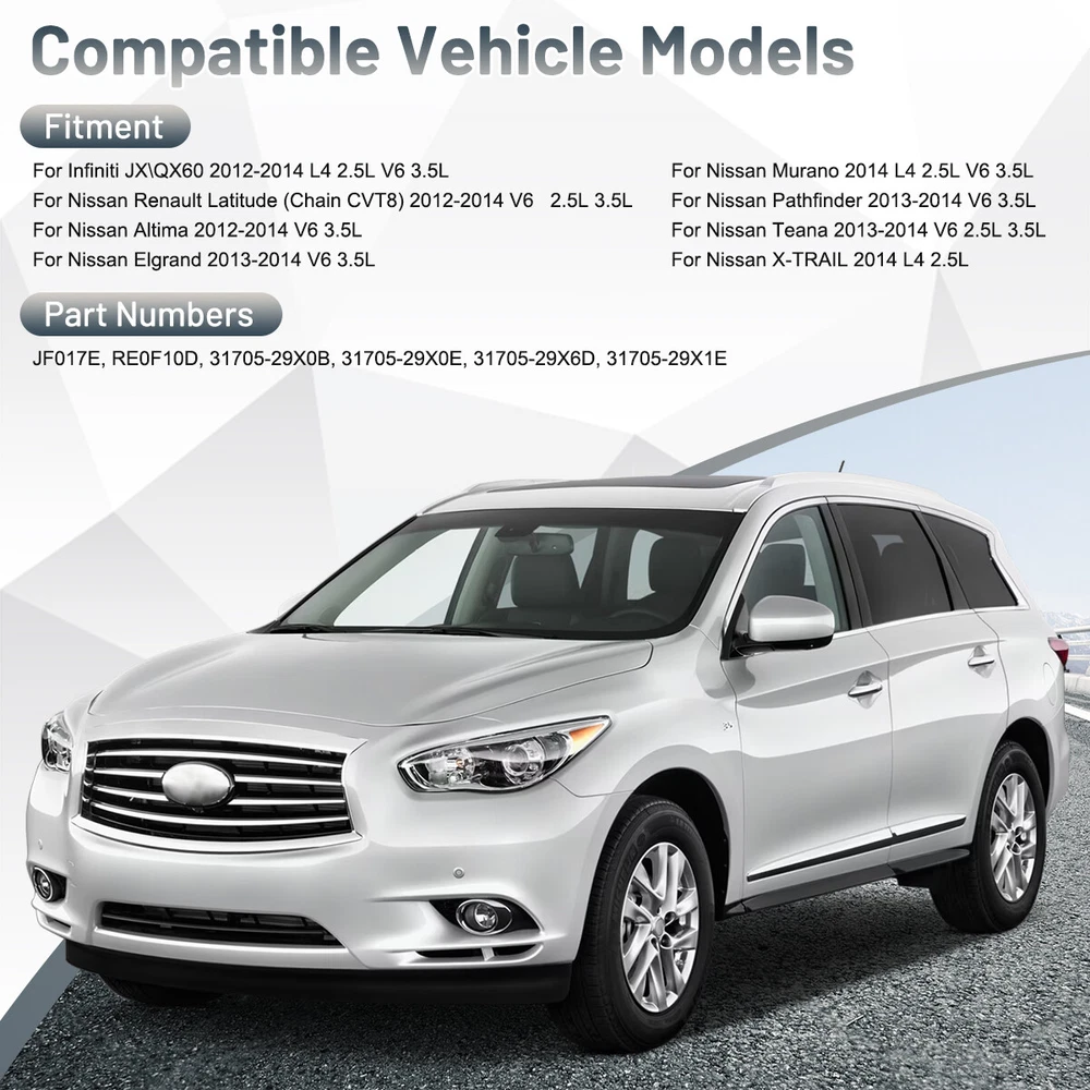 You may also like Transmission Valve Body Solenoid Block Pack 62TE.Fit Dodge Journey Grand Caravan 119.99 USD Free shipping -OEM For 2010~2013 Subaru Legacy Outback 2.5L CVT TR690 Transmission Valve Body. 259.99 USD Free shipping 45RFE 545RFE 68RFE Shift Solenoid 4WD Filter Service Kit 04-On Fits Dodge Jeep _ 199.99 USD Free shipping Transmission Shift Solenoid Kit For 2004-UP Dodge Ram 1500 ST 5.7L V8※52119435AF 199.99 USD Free shipping Transmission Shift Solenoid Filter Kit 5R55W For 2002-Up Ford Explorer 4.0/4.6L※ 165.99 USD Free shipping TR580/690 Torque Converter AWD Pressure Control Solenoid-For Subaru Lineartronic 31.99 USD Free shipping Transmission Shift Solenoid For Tundra A760 A761E A960E AB60E AB60F IS300 GS300_ 119.99 USD Free shipping CVT JF010E RE0F09A/B Transmission Valve Body,for Nissan Murano Maxima Quest OEM- 175.99 USD Free shipping OEM RE0F11A JF015E CVT Transmission Valve Body For 2013-2016 NISSAN SENTRA 1.8L※ 149.99 USD Free shipping OE 5R55S Transmission Shift Solenoid Pack For 2001~2016 Ford Explorer 4.0L 4.6L. 125.99 USD Free shipping 6Pcs Transmission Shift Solenoid Kit 5R55E 4R44E For Ford Ranger Explorer Mazda_ 155.99 USD Free shipping CVT JF010E RE0F09A Transmission Valve Body for 03-up Nissan Murano Maxima Quest※ 175.99 USD Free shipping RE0F11A JF015E CVT Valve Body for Nissan 2013-16 Sentra (1.8L) Versa (1.6L) OE 149.99 USD Free shipping Transmission Shift Solenoid Control Block For 2006-18 Dodge Chrysler RAM 62TE※US 119.99 USD Free shipping Transmission Shift Solenoid Block Pack Kit ForChrysler Dodge Jeep Liberty 42RLE※ 119.99 USD Free shipping -OEM 545RFE Transmission Shift Solenoid Block For Chrysler Dodge Jeep Mitsubishi 126.99 USD Free shipping Product Description ⚡US Warehouse, the estimated delivery time is about 2-5 business days. 💎100% Brand New and High Quality F eatures : Remanufactured and High Quality. Perform as well as new ones,100% Tested to gurantee. According to original factory specifications, perfect match to original car. Made of high quality material. Part Number: JF017E, RE0F10D, 31705-29X0B, 31705-29X0E, 31705-29X6D, 31705-29X1E Fitment: Infiniti JX\QX60 2012-2014 L4 2.5L V6 3.5L Nissan Renault Latitude (Chain CVT8) 2012-2014 V6 2.5L 3.5L Nissan Altima 2012-2014 V6 3.5L Nissan Elgrand 2013-2014 V6 3.5L Nissan Murano 2014 L4 2.5L V6 3.5L Nissan Pathfinder 2013-2014 V6 3.5L Nissan Teana 2013-2014 V6 2.5L 3.5L Nissan X-TRAIL 2014 L4 2.5L Packag includes: 1 x CVT Transmission Valve Body Note: Please Carefully Check Whether the OE Number And Picture are What You Need Before Buying. If You are Not Sure Whether It Fits, Please Write to us. If There are Any Problems, Communication by Letter Will be More Effective. No Instruction Included, professional installation is highly recommended. Payment We accept PayPal only. If buyer want to delay the payment because of financial problem, please contact me by the ebay message within 3 days Payment via PayPal (PayPal accepts all major credits/debit cards and eCheque) ECheque payment will tak e 3-10 days to get clear, thus DELAYing the shipment. Shipping Handling time: 1 business day (Orders are not processed on weekends & holidays) Tracking information will be sent once item is shipped. Local pick-up is unavailable at the moment. For international shipping and shipping to Guam, Hawaii and Alaska, Please contact us before placing the order. Item is shipped to ebay address. Leaving correct address can minimize delay. Terms For any issues with Defects, Return, Item Exchange request, please contact us first and send us a message first before opening any type of case or request. We devote ourselves making EVERY CUSTOMER in 100% Satisfactory and resolve any problem. We highly value and appreciate your business. Thank you. No returns will be accepted without an RMA number. Please contact us for the RMA number. Return is acceptable within 30 days of delivery. Return for replacement or money back is optional. Returned items must be in the brand new, unaltered and resalable condition. Seller is not responsible for any labor cost, expense in a dealer store, or damage due to wrong installation. Returns Return is accepted within 14 days after the buyer's receiving the item. (Excluding contrived damagement or misusage).100% money-back Guaranteed! All product will be tested in 100% before delivery.If the item is defected by the processing of postage,Buyer has up to 14 days from date of receipt for exchange of a new one.All shipping charges for returned products are to be paid by the buyer,Please contact us for the return address Contact Us All messages will be answered within 24 office hours. Please contact us either by clicking "contact seller" in the "purchase history" section or simply click "ask a question" at the bottom of this page. If you are unsatisfied with our item or service, please contact us before leaving any feedback. We are committed to resolve all issues in a friendly and satisfactory manner. We always reply to messages within 2 business days (off-duty at weekend). If you do not get a response from us, then please check your junk or spam mailbox. powered by