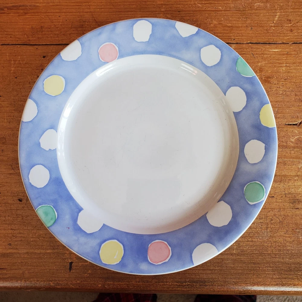 Van Beers 4 Plates 8" Riviera By Signature Pastel Blue White Dots Pattern Japan 4 Signature Riviera salad plates In nice pre-owned condition (see pictures) Thanks for looking Lot 35