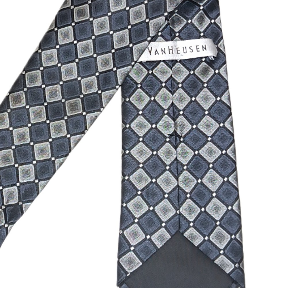 Van Heusen Mens 62-Inch Black Gray Geometric Silk Tie Classic Designer Style