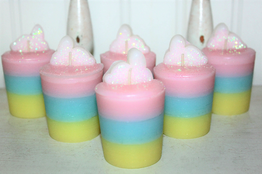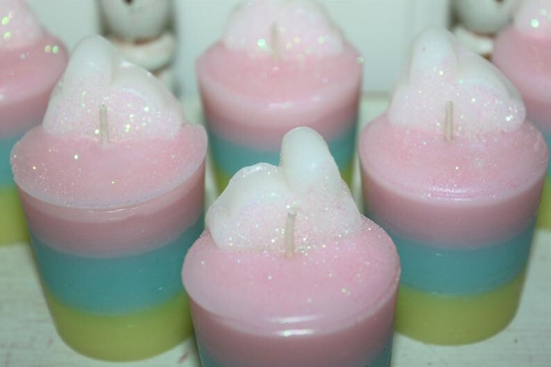 I CAN MAKE THESE ANY SCENT I STOCK SO FEEL FREE TO CONTACT ME FOR A SCENT CHANGE REQUEST **** SHIPPING IS OFTEN CALCULATED HIGH WHEN PURCHASING MORE THAN 1 ITEM SO FEEL FREE TO MESSAGE ME FOR A SHIPPING QUOTE **** When combining purchases please click on "request total from seller" at checkout and wait for me to send you a invoice with combined shipping. If you are using your phone this option may not be available and if so just message me and I can make you a listing with everything combined and the correct amount on shipping. Thank You ;) This candle set is made with a special blend of paraffin wax that allows me to add up to 10% more fragrance than most waxes. These are my glittery red heart striped Valentine's candles highly scented in MARSHMALLOW PEEPS. This yummy blend of sweet marshmallow fluff has huge nostalgic appeal. Butter crème and vanilla bean are folded into fluffy white marshmallow and sweet sugar to tempt the senses. Excellent scent! You will receive a set of 6- 2" approx. standard size votive candles decorated for Easter with a glittery bunny on top. Burn in small votive container. They would make a great unique holiday gift too and please be sure to check my other listings for terrific smelling candles and tarts to go with your order. International Buyers : Please contact me for shipping quote. Shipping I strive to ship within 48 hours of payment received not including weekends and holidays. I ship USPS Priority or Parcel Post and for the heavier orders I can ship Fed-Ex. I do offer USPS Flat Rate shipping as well. Insurance is the buyers responsibility. I am always happy to combine auctions to save you money on shipping fees. Please email with any shipping questions or quotes if needed. Thanks for stopping by! Please do come back again soon~ WARNING Burn within sight. Keep away from flammable objects. Keep away from children and pets. Burning Instructions: Trim wick to 1/4" before lighting. Keep candle free of any foreign materials including matches and wick trimmings, Only burn the candle on a level, fire resistant surface. Do not burn candle for more than four hours at a time. Stop use when only 1/4" of wax remains. *** Please note I do not accept returns for used merchandise. Must be returned in same condition as received. *** RETURNS ARE ONLY ACCEPTED IF ITEM HAS BEEN MISREPRESENTED