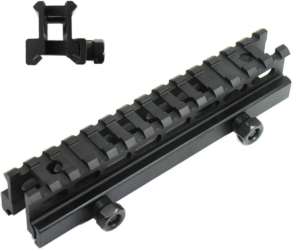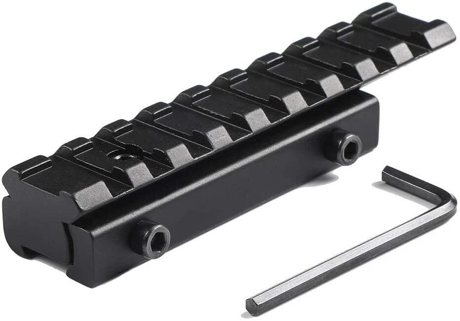 Various Rifle Scope Mounts Set Base Adapter Picatinny Dovetail Rail Slots Mount A: Flat Top 1" Riser Features Raise flat rail line of sight by 1 inch 5.7" in length, sufficient for mounting most optics and lights See-thru design, allowing for using optics and iron sights at the same time Easy fitting and removal with large thumb wheels (no tools needed) Durable all metal construction Lightweight, made of aluminum with black anodized matte finish Dimensions: 5.67"/144mm (length) x 1" (height) x 30mm (width) Weight: 173g (6.1oz) Material: Aluminum, Steel Finish: Black Matte Interface: Picatinny / Weaver Rails Items Included One (1) 1" see-through rail riser I: 11mm to 20mm Mount Base Specifications Color: Black Material: Aluminum Base Length: 2.95 in Rail Length: 3.94 in Weight: 2.82 oz Rail Type: Dovetail (Scope Riser Picatinny Rail Adaptor Base Mount For 3/8" to 7/8" Converter Adaptermm/3/8 inch) About This Item Durable Material: The Picatinny rail mount is made of aircraft-grade aluminum alloy with a black hard coat anodize finish, sturdy & durable. Convert Dovetail to Picatinny Rail: The rail adapter converts Scope Riser Picatinny Rail Adaptor Base Mount For 3/8" to 7/8" Converter Adaptermm dovetail rail to widely used 20mm Picatinny rail for more flexible optics placement. Suitable Mount Base: Rail adapter fit Scope Riser Picatinny Rail Adaptor Base Mount For 3/8" to 7/8" Converter Adaptermm dovetail mounts. Base mount 3/8" to 7/8" converter adapter. Low profile 0.59" riser rail for scope. 9-Slots Long Rail: 20mm top 9-slots picatinny rail has a length extention on the riser basis, allows for the mounting of picatinny or weaver standard scopes, red dots or other accessories. Note: If the top of your dovetail groove is arch-shaped, when installing the product, you need to turn the removal plate 180 degrees and then install it on the rail, so that the product will not be cant. Package Include 1x Picatinny Adapter 1x Allen Key D: Set of 3/5/7/9/11/13 Slot Rail Details: Color - Black Material: aluminum alloy Track type - 21mm Suitable for hand guards and most standard hand guards. Polymer structure. The rail section also has an inclined end to reduce obstacles and eliminate sharp corners and edges. 21mm standard RIS braided guide rail, laser/flashlight/front clip can be added. Element track: 3 slots/5 slots/7 slots/9 slots/11 slots/13 slots 3 slots: length: 35 mm (1.38 inch) width: 21 mm (0.83 inches) 5 slots: length: 55 mm (2.17 inches) width: 21 mm (0.83 inches) 7 slots: Length: 75 mm (2.95 inches) Width: 21 mm (0.83 inches) 9 slots: Length: 100 mm (3.74 inches) Width: 21 mm (0.83 inches) 11 slots: length: 120 mm (4.53 inches) width: 21 mm (0.83 inches) 13 slots: length: 135 mm (5.31 inches) width: 21 mm (0.83 inches) Packing list: One 3-5-7-9-11-13 guide rail Each guide rail is equipped with two screws, two nuts and a wrench B: 45 Degree Offset Rail Mount 5 Slots Mount Lasers, Flashlights, Sights, Red Dots, or other accessories in an offset position with this adapter. Specifications: * Aircraft grade black anodized aluminum * 5 slots * Length: 2.1" E: Sling Swivel Stud Mount Adapter 20mm for Bipod Features: Most Innovative Design to Convert Swivel Stud into 1-Slot Picatinny Rail for Installation Provides Alternative Swivel Stud For Sling Swivel Attachment Easy to install Suitable for 20mm rail Material:Aluminum/Steel Color:Black Package includes 1x Slot Adaptor Kit F: Flat TOP 1/2" Mini Riser Block Mount Specifications Dimensions 0.6" (H) 1.6" (L) 1.3" (W) Weight: 2.3 oz / 63 g Material: Aluminum, Steel Finish: Black matte Interface: 20mm Picatinny / Weaver Rails Items Included 1x 1/2" rail riser / mount G: Scope Ring Mount with Tri Picatinny Rail Specifications Dimensions: 2.5" (height) x 2.25" (width) x 25mm (depth) Weight: 3.2 oz (90g) Color: Black Material: Aluminum, Steel Ring Diameter: 30mm / 1" Fits: 20mm rails Items Included One (1) tri-rail scope/laser mount One (1) 30mm to 1" reducer insert One (1) Allen key H: 20mm Dual Rail Barrel Mount Adapter Solid Aluminum Construction with Matte Black Finish Smart 2 Piece Design for Clamping Rifle Barrel Compatible Barrel Range: Diameter 10-21mm Installs Easily and Wrench is Included Great for Bipod ,Flashlight, Laser Sight Mounting. Adjustable Double Rail 20mm Picatinny Weaver Rail Barrel Mount Adapter for Scope Rifle Shotgun Flashlight Laser w/ Wrench Easily to attach tactical laser sight or flashlight. Fits both Picatinny/Weaver accessories and mounts. Wide clamping range. Fits most rifle barrels. Size: 26 x 35 x 35 mm (1.02" x 1.38" x 1.38" Approx.). Rail Width: 20mm (0.79" Approx.). Z: 1" Scope Rings High Profile for 11mm Dovetail Rail Dovetail Scope Rings for 3/8" or 11mm Dovetail Rails, High Profile Scope Mounts, 2Pieces Double scope ring mount for 11mm dovetail rail, specialized scope mount for Airgun/.22 Rails. Design in Hollowed-out configuration between the ring and the bottom of the base to release heavy duty when clamping your scope. Lightweight: 1.15oz per ring. High profile, 20mm/0.79 in Gap from base of the mount to bottom of rings. ( Item height: 1.97) The ring is for most scopes which are in 1/ 25.4mm scope tube. With only 1 rail clamp screw and 1 scope clamp screw per side, quick and easy to install. Precision and Repeatable Alignment. L: 1" Mag Tube Tri Rail Picatinny Mount 12GA Material: Aluminum Size: 4 * 3.7 * 3.5cm 5 attachment points Suitable for 1 "diameter pipe 3 Picatinny rails on each side 12 No. 12 shotgun cartridge mounted Package Included: 1 rail clip / 1 wrench M: 1" Mag Tube Tri Rail Picatinny Mount 12GA Specifications: Fits 1” Diameter tubes Material: Aluminum Color: Black Overall Height: 1.5” Overall Length: 1.4” Overall Width: 1.5” Weight: 1.3 ounce Package List: 1x Rail Mount Q: 1" Ring Offset Light Mount for MLOK FEATURES This mount is aluminum construction and precise machining. 1 inch diameter for any tube accessories such as flashlight. The ring mount is solid and lightweight perfect for