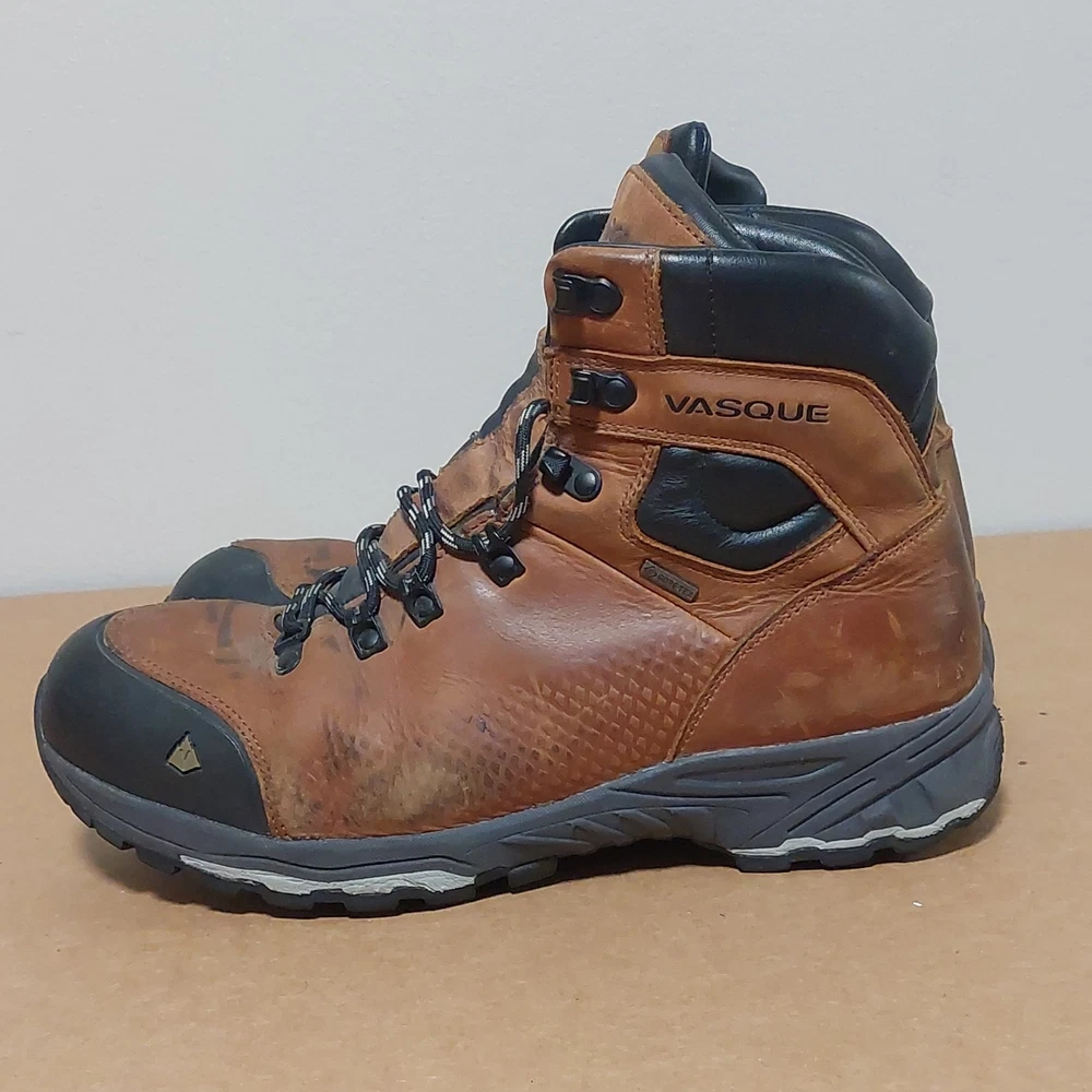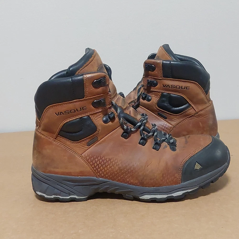 The Vasque St. Elias GTX Hiking Boots 7160 are a high-quality option for outdoor enthusiasts. These men's size 11M boots feature a durable brown color and are made in Vietnam. With Goretex technology, they are designed to keep your feet dry and comfortable during long hikes. Additionally, these boots are not treated for insect repellent, so you can focus on enjoying the scenery without worrying about pesky bugs. Perfect for camping and hiking adventures, these Vasque boots are a reliable choice for any outdoor activity.