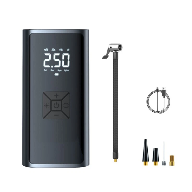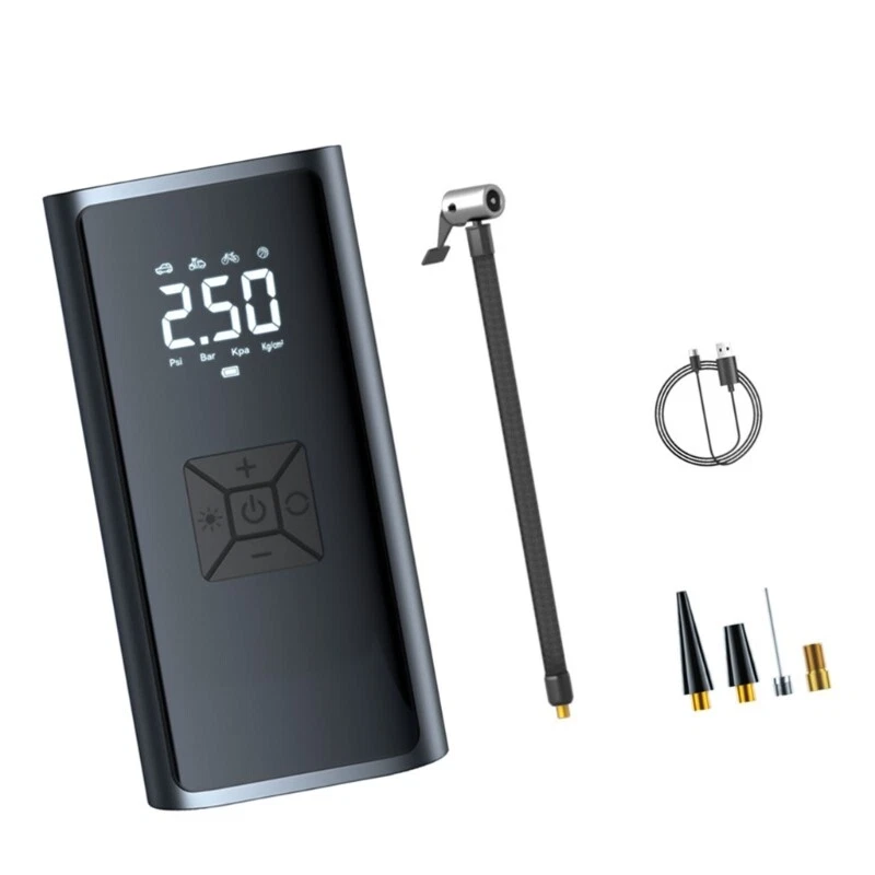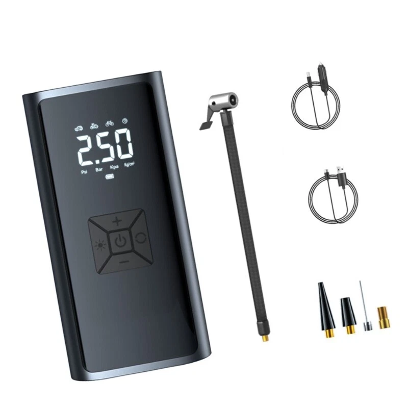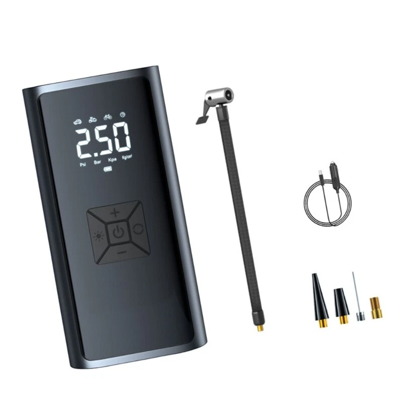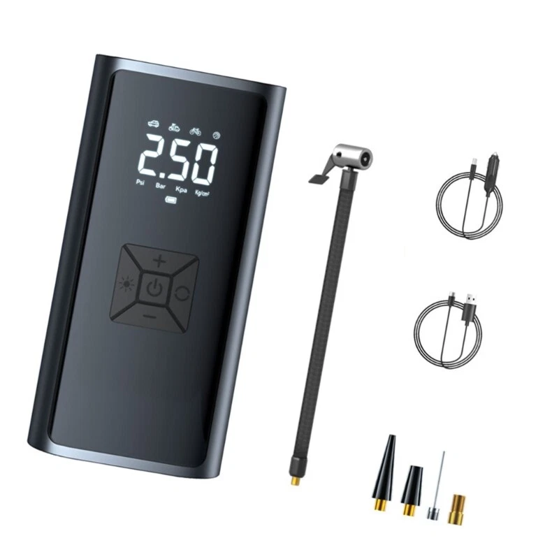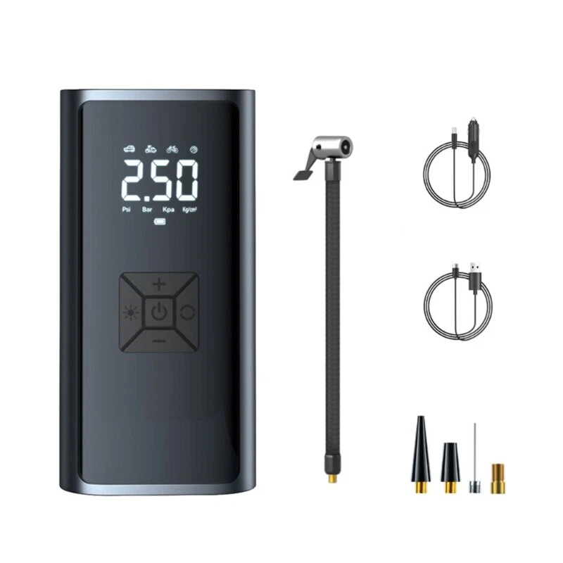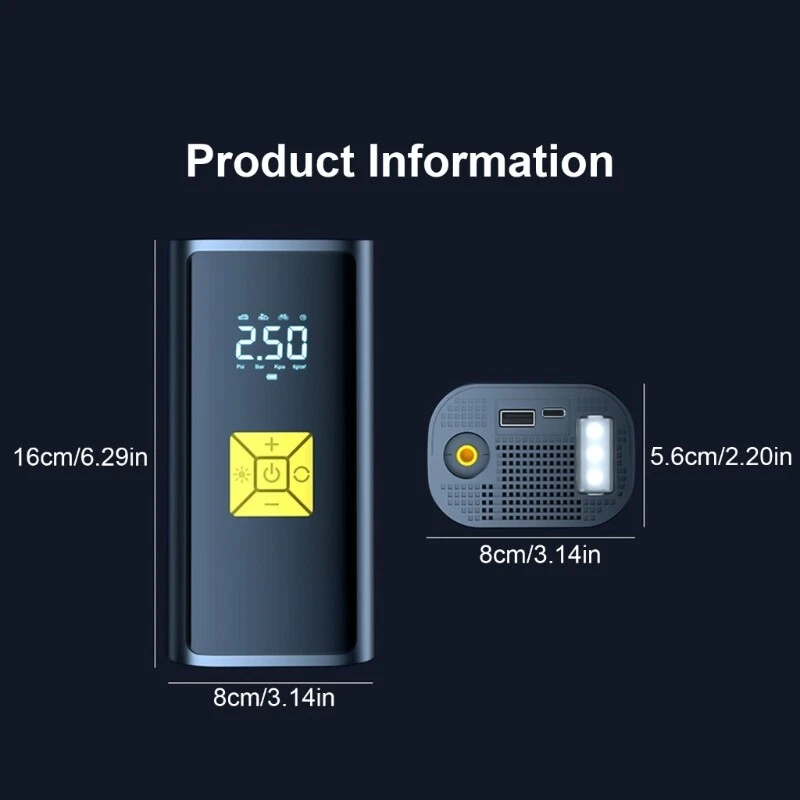 Vehicle Air Compressor Tire with LED Lighting and Accurate Pressure Display Features: Experience the convenience of our portable multifunction car air pumps, essential tool for tire inflation, pressure measurement, and lighting. Designed with portability in mind, this light weight air pumps features a digital display, presets pressure function for long lasting use. For car owners, cycling enthusiasts, outdoor adventurers, and long distance seeking a reliabled solution for tire maintenance and situations. Whether you're engaging in outdoor sports, or simply need to inflate equipment at homes, this air pumps is your go to device for maintaining optimally tire pressure. With its strong compatibility across various vehicle types and user friendly this air pumps ensures that you're prepared for any inflation task with efficiency and ease. Specifications: Component:ABS+ Electronic Size:Approx.16x8cm/6.29x3.14inch Color:Black Working 7.4v Rating input: 5V1A Rating power: 60W Pressure pressure: 3-150PSI. Accuracy: ±1.5psi Air volumes: 16L/min Continuous working time: 8-10min Package Includes: 1pcs Car Tire Inflator Pumps note: 1.Please allow 1-2cm errors due to manual measurement, make sure that you donot mind befores you order. 2.Due to the differences between different monitors, the picture may not reflect the actual coloring of the item. Thanks for your understandings.