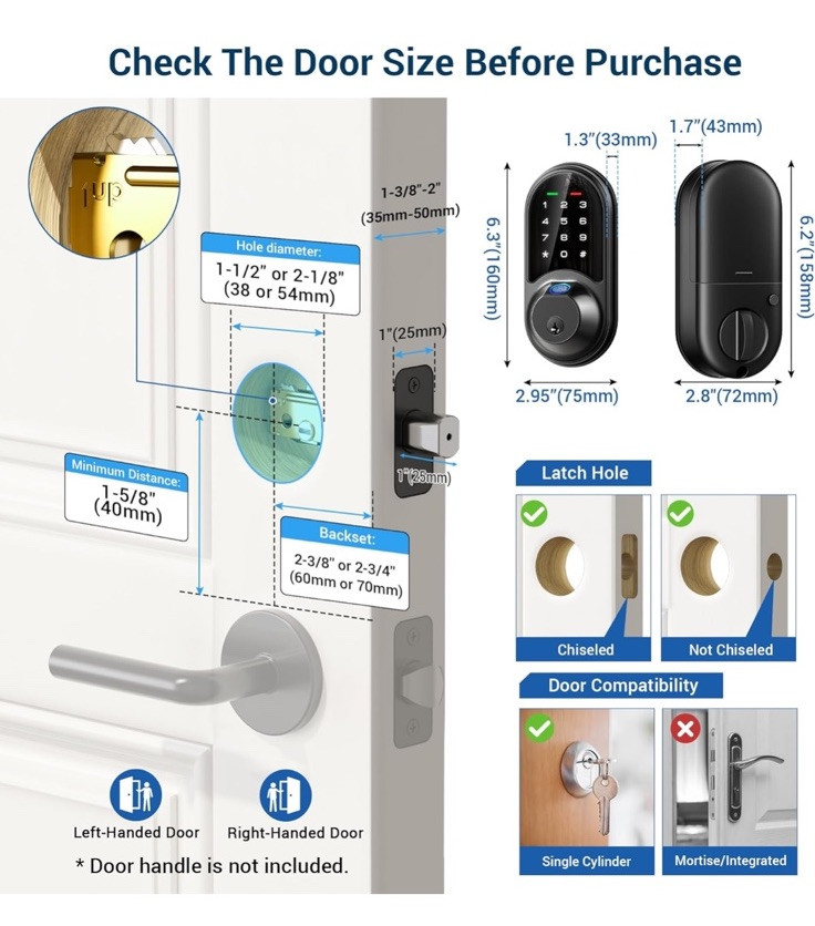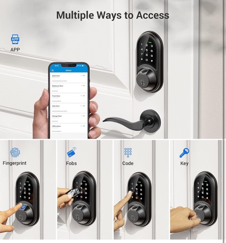 7-in-1 Smart Door Lock: Access your smart lock via Fingerprint + App + Web portal + Fobs +Code + eKey sharing + Mechanical key App & Web Portal Control: You can control the smart lock via smartphone, remotely generate eKey and grant access, manage users, and view records in the app and website management system. The App & Web is free and can be used forever Intelligent Management: With 50 fingerprints and 250+ multiple user codes, you can remotely generate and share one-time, permanent, scheduled, and recurring code with your house sitters and guests. Ideal for house, apartment, office, and hotel Enhanced Security: The intelligent lock features auto-lock, one-touch locking, privacy mode, passage mode, and low battery alert, made with an anti-peeping and anti-hacking touchscreen keypad, keeping your home secure Smart Home Integration: With the Veise G2 gateway(sold separately), you can remotely access your smart deadbolt and voice control with Alexa and Google Home, view real-time access logs, monitor smart lock status, etc