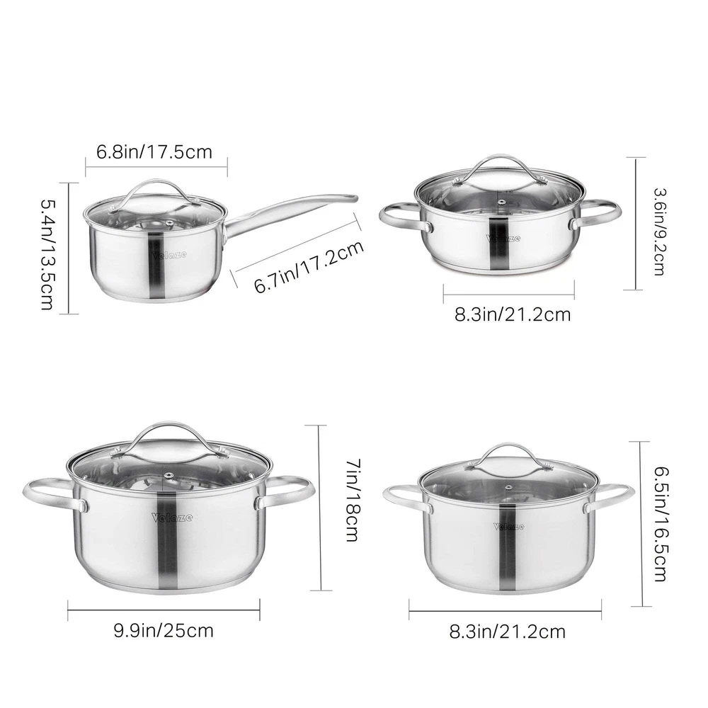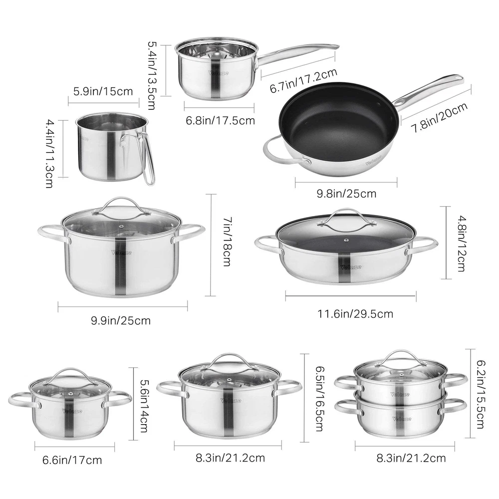 Velaze Cookware Set Stainless Steel 8/9/14 Piece Cooking Pot Pan Set Induction Safe Saucepan Casserole with Glass lid Non Stick SPECIFICATIONSBrand Name: MALACASAOrigin: Mainland ChinaType: Cookware SetsPot Cover: With Pot CoverFeature: Eco-FriendlyModel Number: VLZ-GB-8/9/14Certification: LFGBCertification: CE / EUCertification: CIQCertification: SGSMaterial: STAINLESS STEEL Velaze - Tasty Life, Gourmet at home Velaze, Miki, 8/9/14 Pieces - Set of Pots and Pans, Cookware Battery Chef Casserole in Stainless Steel Chrome Suitable for Induction Plates, Glass Lid, Silver Velaze has launched this set to meet the needs of every kitchen. Its pots and pans are essential for everyday use.Velaze Cookware Set, Series Miki cookware is very popular amongst beginners and gourmet cooks alike thanks to excellent conductivity and durability on both the exterior and interior of the product. Long-lasting and light weighted this material is easy to use for everyday cooking. Prepare food for your family every day, Velaze will always be with you ! We have kitchen utensils such as pots, knives, salad bowls, coffee makers, French fries baskets, ice buckets etc , Our multi-capacity kitchen trash cans make your kitchen more clean and tidy.high quality stainless steel, durable, beautiful and practical,elegance kitchenware accomplish tasty life. [SET 8 POTS INCLUDES] 1x Milk pot with lid16x 9.5cm (1.6L) 1x Casserole with lid 18x 10.5cm (2.3L) 1x Casserole with lid 20x 11.5cm (3.2L) 1x 16x 9.5cm pot (1.3L) 1x Pan 24x 6.5cm (2.3L) [SET 9 POTS INCLUDES] 1x 16x 9.5cm pot (1.9L) 1x 16x 9.5cm (1.9L) milk pot 1x 18x 10.5cm (2.3L) casserole 1x 20x 11.5cm (3.2L) 1x 24x 13.5cm (5.4L) Casserole 4xTempered glass lid [SET 14 POTS INCLUDES] 1x casserole with non sticker and with lid,Ø 28 cm, 7.5 cm high 1x frypan with non sticker and with lid,Ø 24 cm, 6.5 cm high 1x casserole with lid, Ø 20 cm, 8 cm high 1x casserole with lid, Ø 24 cm, 13.5 cm high 2x steamer ,Ø 20 cm, 9 cm high 1x casserole with lid, Ø 16 cm, 9.5 cm high 1x saucepan without lid, Ø 16 cm, 9.5 cm high 1x milkpot without lid, Ø 14 cm, 11 cm high Velaze Cookware Set Stainless Steel 8/9/14 Piece Cooking Pot Pan Set Induction Safe Saucepan Casserole with Glass lid Non Stick SPECIFICATIONS Brand Name : MALACASA Origin : Mainland China Type : Cookware Sets Pot Cover : With Pot Cover Feature : Eco-Friendly Model Number : VLZ-GB-8/9/14 Certification : LFGB Certification : CE / EU Certification : CIQ Certification : SGS Material : STAINLESS STEEL Velaze - Tasty Life, Gourmet at home Velaze, Miki, 8/9/14 Pieces - Set of Pots and Pans, Cookware Battery Chef Casserole in Stainless Steel Chrome Suitable for Induction Plates, Glass Lid, Silver Velaze has launched this set to meet the needs of every kitchen. Its pots and pans are essential for everyday use.Velaze Cookware Set, Series Miki cookware is very popular amongst beginners and gourmet cooks alike thanks to excellent conductivity and durability on both the exterior and interior of the product. Long-lasting and light weighted this material is easy to use for everyday cooking. Prepare food for your family every day, Velaze will always be with you ! We have kitchen utensils such as pots, knives, salad bowls, coffee makers, French fries baskets, ice buckets etc , Our multi-capacity kitchen trash cans make your kitchen more clean and tidy.high quality stainless steel, durable, beautiful and practical,elegance kitchenware accomplish tasty life. [SET 8 POTS INCLUDES] 1x Milk pot with lid16x 9.5cm (1.6L) 1x Casserole with lid 18x 10.5cm (2.3L) 1x Casserole with lid 20x 11.5cm (3.2L) 1x 16x 9.5cm pot (1.3L) 1x Pan 24x 6.5cm (2.3L) [SET 9 POTS INCLUDES] 1 x 16x 9.5cm pot (1.9L) 1 x 16x 9.5cm (1.9L) milk pot 1 x 18x 10.5cm (2.3L) casserole 1 x 20x 11.5cm (3.2L) 1 x 24x 13.5cm (5.4L) Casserole 4 x Tempered glass lid [SET 14 POTS INCLUDES] 1x casserole with non sticker and with lid,Ø 28 cm, 7.5 cm high 1x frypan with non sticker and with lid,Ø 24 cm, 6.5 cm high 1x casserole with lid, Ø 20 cm, 8 cm high 1x casserole with lid, Ø 24 cm, 13.5 cm high 2x steamer ,Ø 20 cm, 9 cm high 1x casserole with lid, Ø 16 cm, 9.5 cm high 1x saucepan without lid, Ø 16 cm, 9.5 cm high 1x milkpot without lid, Ø 14 cm, 11 cm high × × × × × × × × × × Shipping info Click the Shipping & Payments tab above the listing description for more info FREE Shipping Click the Shipping & Payments tab above the listing description for more info! Additional delivery notes PICK UP OPTION Sorry, our items are NOT available for pick-up. PAYMENT Immediate payment is required upon selecting "Buy It Now" or upon checking out through the cart. We accept payment via U.S. PayPal accounts and all Major Credit Cards, Debit Cards & Google Pay. We are legally required to collect sales tax in those states and localities where we maintain a physical presence (nexus). The applicable amount of sales tax charged to an order will be calculated based on the shipment destination's state and local sales tax laws. Thank you for shopping with us on eBay! Additional Information No additional information at this time Ask seller a question You might also like CHRLCK Men's Running Quick Drying T-shirts Breathable Hiking Fishing Tees Soft E Interstellar Series Y-Wing Fighter Building Blocks Set, Compatible with Lego 751 4 PCS 12V LED Light Bar 48W Mini LED Work Light Off Road Spotlight for Jeep Truc 5471Pcs 2024 New 10333 Black Tower Dark Model Building Blocks Kit Bricks Creativ Contact To contact our Customer Service Team, simply click the button here and our Customer Service team will be happy to assist. Ask seller a question © EzBuyCo Shipping & Payments Shipping is FREE for this item Payment Accepted Payment Methods Immediate payment is required upon selecting "Buy It Now" or upon checking out through the cart. We accept payment via U.S. PayPal accounts and all Major Credit Cards, Debit Cards & Google Pay. We are legally required to collect sales tax in those states 