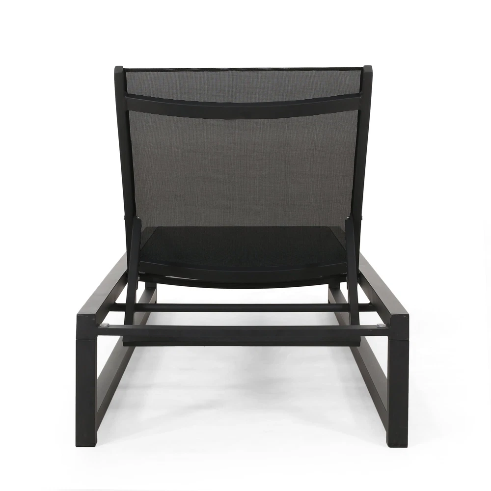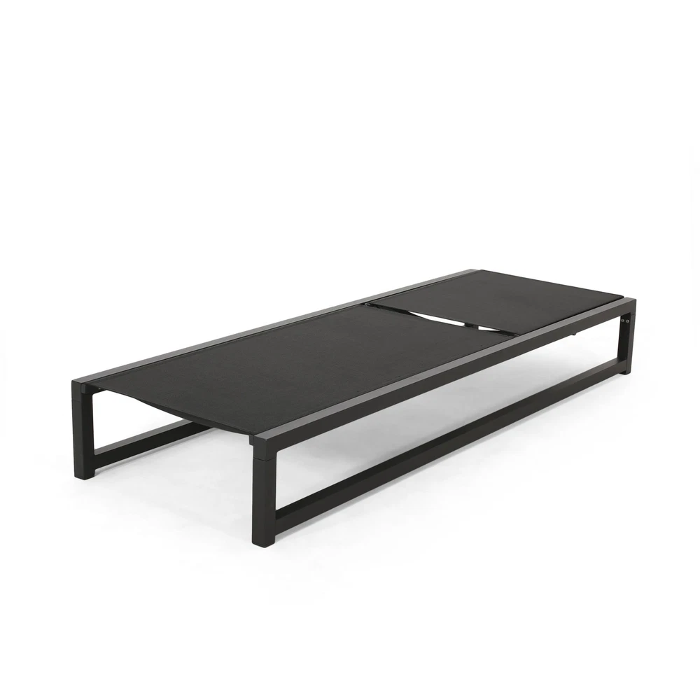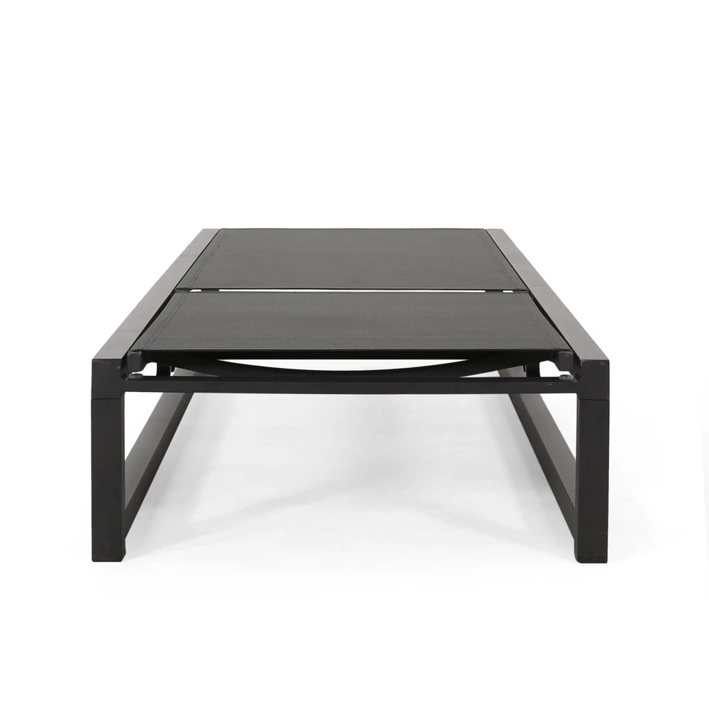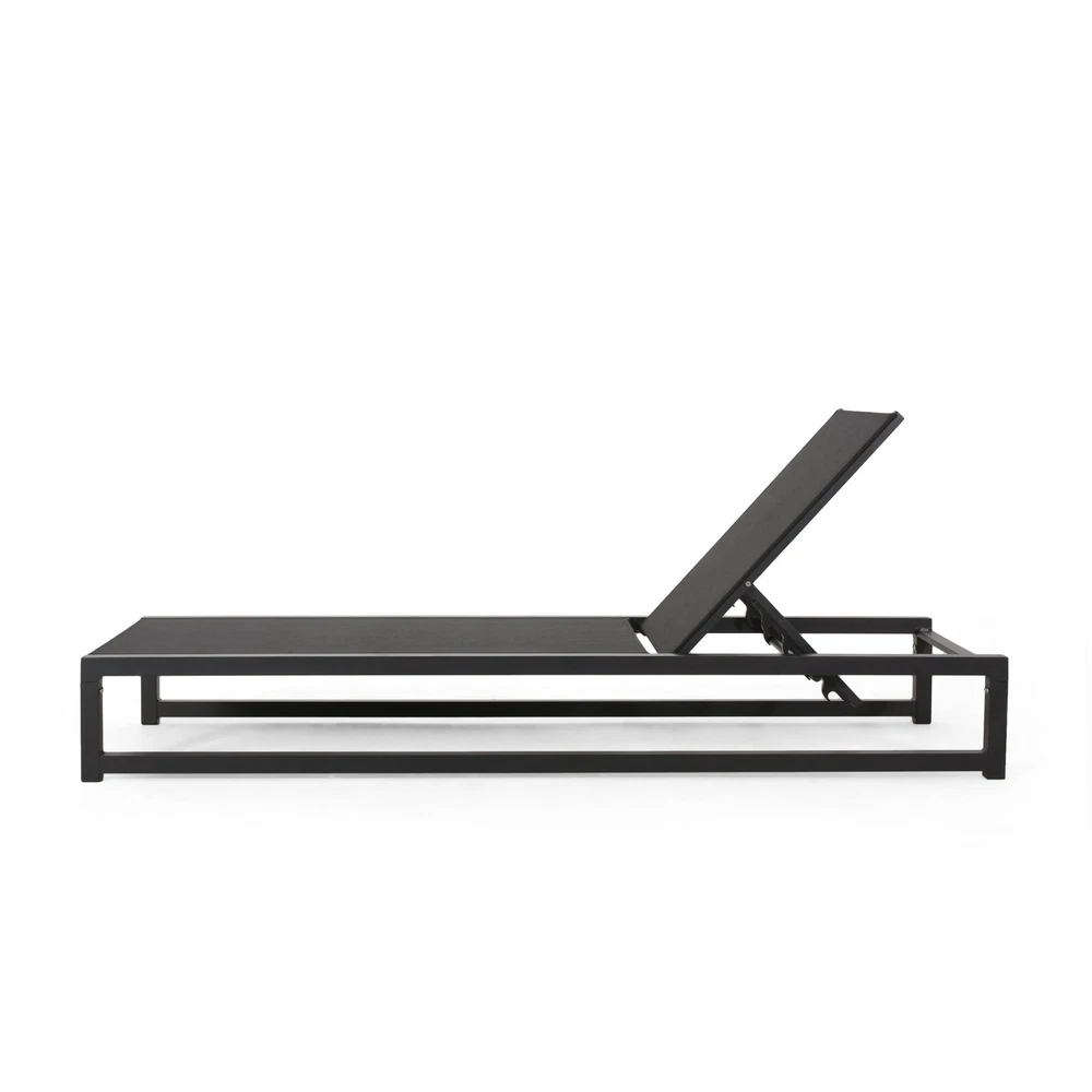 Specifications Place of Origin #originPlace# Main Color Black Main Material Nylon Mesh Dangerous Goods #dangerFlag# Dimensions & Weights Assembled Length (in.) 77.00 Assembled Width (in.) 26.50 Assembled Height (in.) 10.50 Weight (lbs) 20.61 Product Features Adorn your patio space with a delightful classic chaise lounge set that is fully adjustable, giving you everything you need to turn your outdoor space into a resort. ALUMINUM FRAME: This chaise lounge set is built with aluminum, creating a lightweight and stable frame. This material is rust-resistant which will further extend the life of your product. MESH SEATING: This features seating constructed of outdoor mesh material, making our chaise lounges both flexible and supportive. This lightweight material allows air to circulate and ventilates body heat on a hot day. ADJUSTABLE: Our chaise lounge set offers adjustable seating to ensure maximum comfort. This chaise accommodates five different positions, including a fully reclined option. DIMENSIONS: Choose an accessory that is the perfect size for you and your furniture. Each chaise lounge is 77.00” W x 26.50” D x 10.50” H and can open up to 77.10” W x 26.70” D x 34.25” H. You will love how much your space can transform with the simple addition of this charming lounge set. ASSEMBLY REQUIRED: Some assembly is required for this chaise lounge. All of the instructions and tools needed for assembly are included. Hand-Crafted Details Dimensions: 77.00 inches deep x 26.50 inches wide x 10.50-34.25 inches high Weight Capacity: 300 lb Description