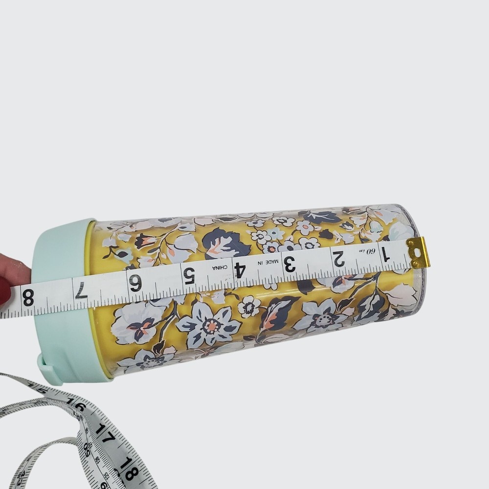 The Vera Bradley Floral Travel Tumbler combines style and practicality, featuring a vibrant floral design. Its 16 oz capacity is suitable for daily hydration, while the BPA-free plastic ensures safe use. The tumbler's mint green lid offers a secure seal, enhancing its functionality for on-the-go lifestyles. • Floral pattern design • 16 oz capacity • BPA-free plastic • Mint green lid • Secure seal lid • Made in China Top Diameter = 3.25 Inches Height = 8 Inches Condition: Pre-Owned Good Excellent condition from a pet and smoke free home. Please see pictures for condition. All offers considered!