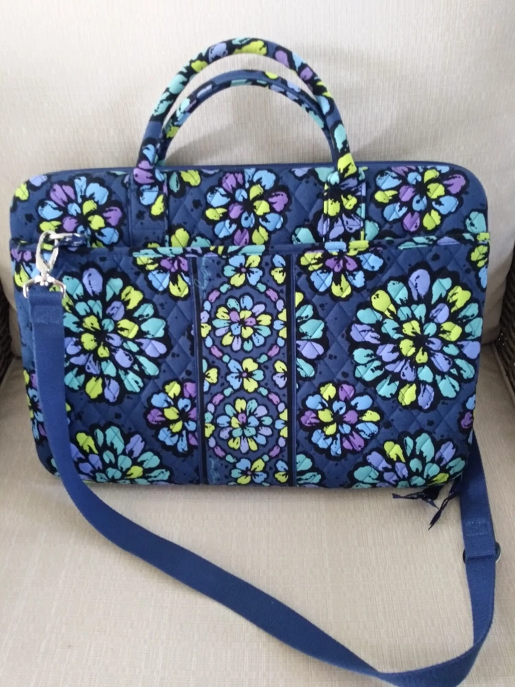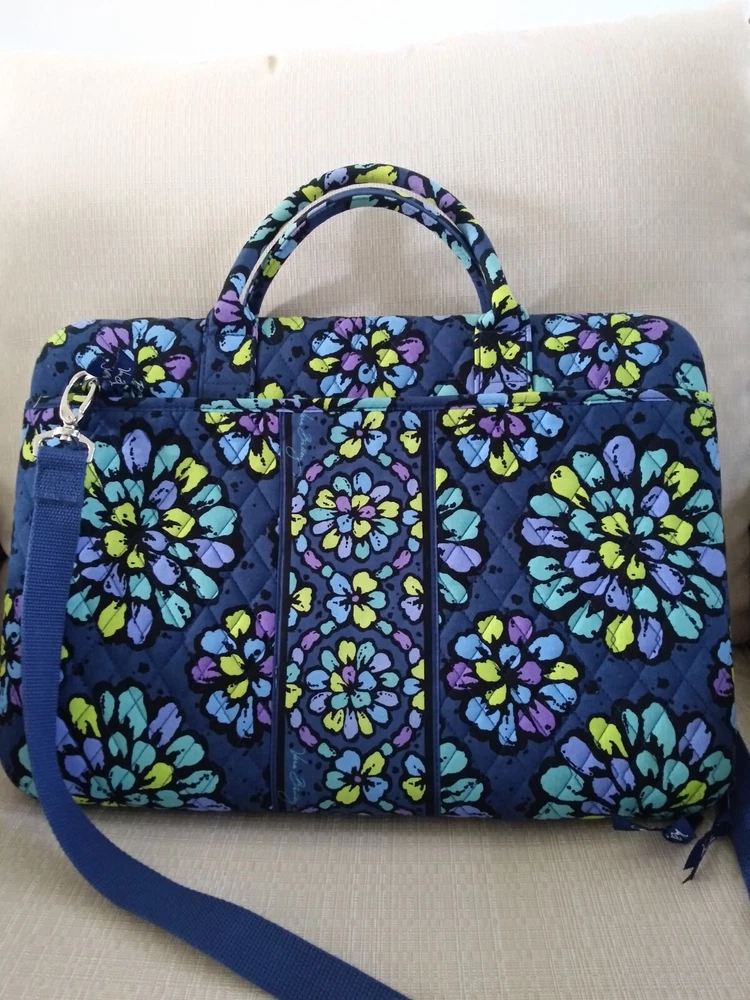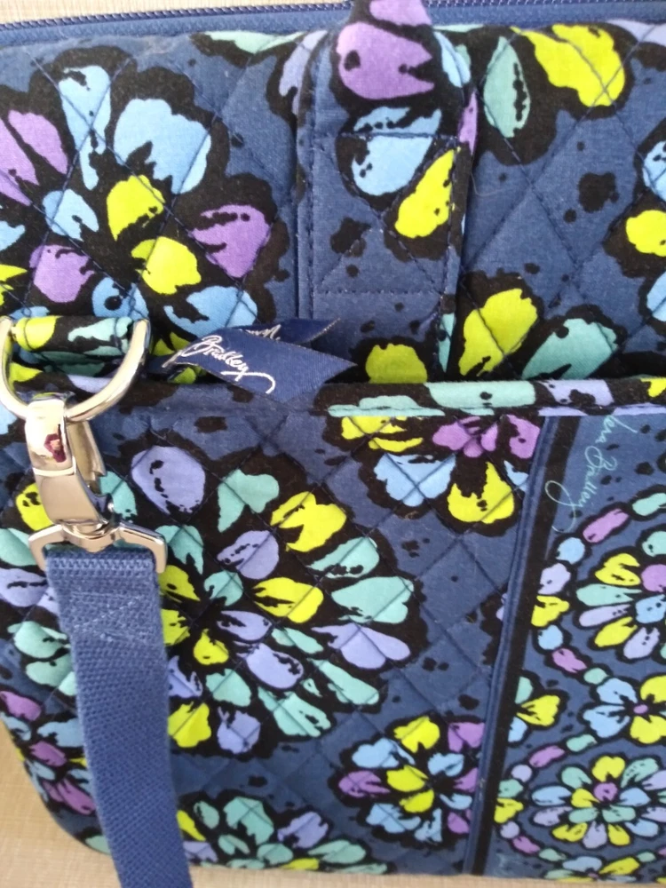Vintage: No Lining Color: Blue Department: Women Features: Folding Style: Tote Handle/Strap Material: Cotton Character: Work Product Line: Vera Bradley Iconic Lining Material: Cotton Accessories: Other Strap Pattern: Floral Size: Large Accents: Zipper Exterior Material: Cotton Occasion: Workwear Hardware Color: Silver Exterior Color: Blue Theme: Colorful Shape: Rectangle Closure: Zip Handle/Strap Color: Multicolor Country/Region of Manufacture: Unknown Brand: Vera