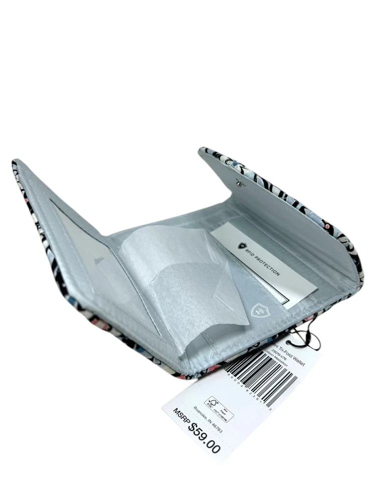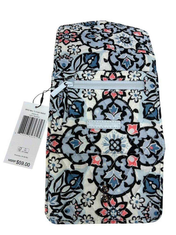 NWT Vera Bradley Mini Tri-Fold Wallet in Lisbon Medallion Floral Floral printed Quilted soft cotton fabric Tri-fold closure Button snap closure Multiple card slots and ID slot Money slot RFID blocking 1 zip pouch on back Lightweight Nylon lining Made with cotton/nylon Made in Cambodia OSFM #verabradley #verabradleywallet #floralprint #quilted #verabradleyminiwallet #trifold #trifoldwallet #quiltedwallet #lisbon #lisbonmedallionfloral