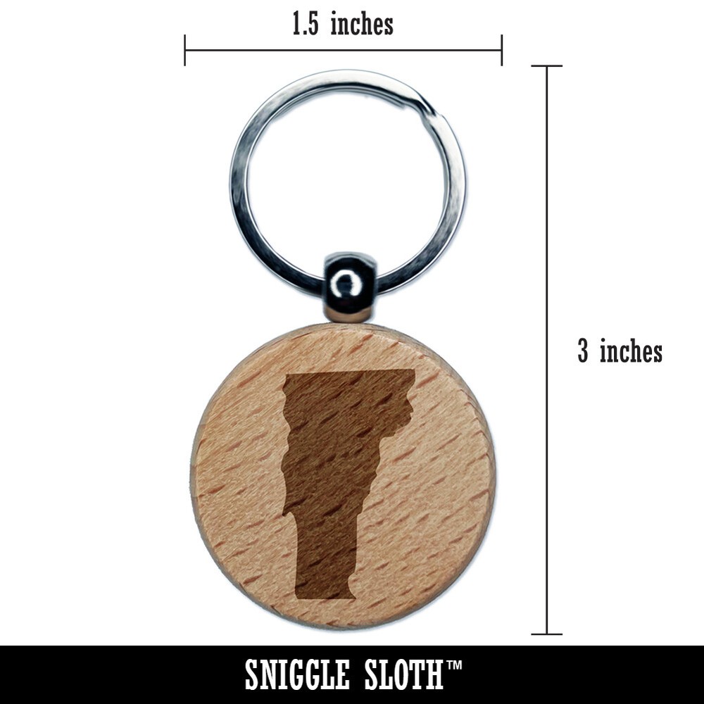 Vermont State Silhouette Wood Engraved Keychain Charm