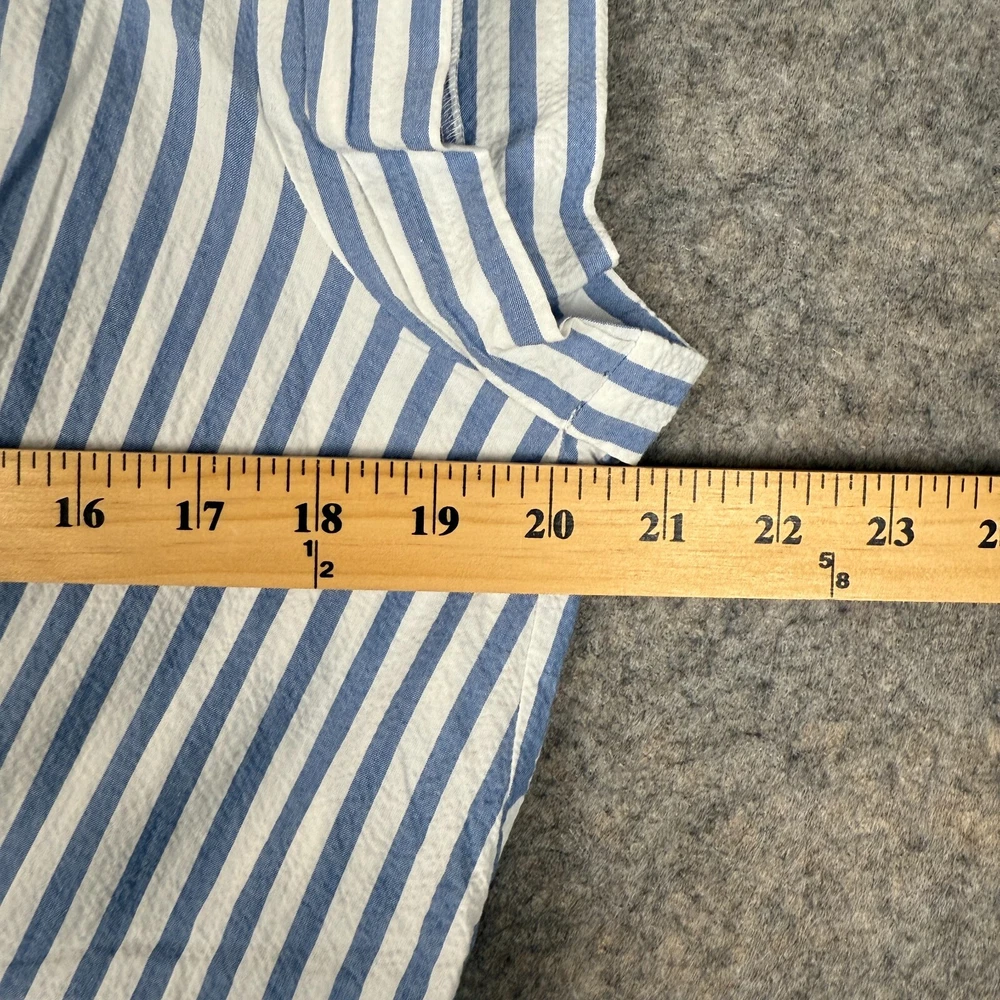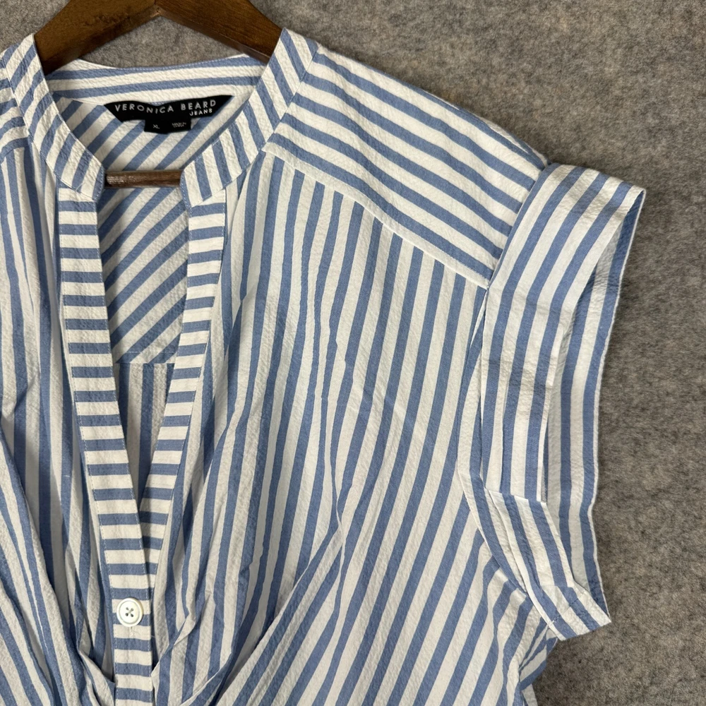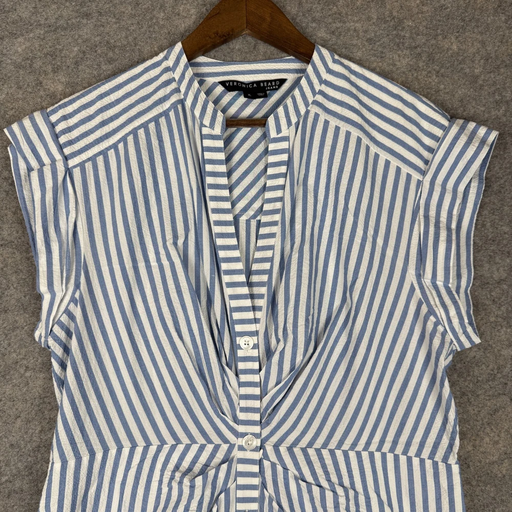 Brand: VERONICA BEARD Features: Pockets Department: Women Size: XL Pattern: Striped Color: White Country/Region of Manufacture: United States Seller Notes: “Very good condition. No visible stains or defects. Gently used - well cared for.” Sleeve Length: Short Sleeve Season: Fall, Spring, Summer, Winter Garment Care: Machine Washable Dress Length: Short Material: Cotton Blend MPN: j2202sr018s0283 Vintage: No Theme: Designer, Preppy Style: Mini Neckline: V-Neck Size Type: Regular Closure: Button Occasion: Business, Casual, Party/Cocktail, Travel