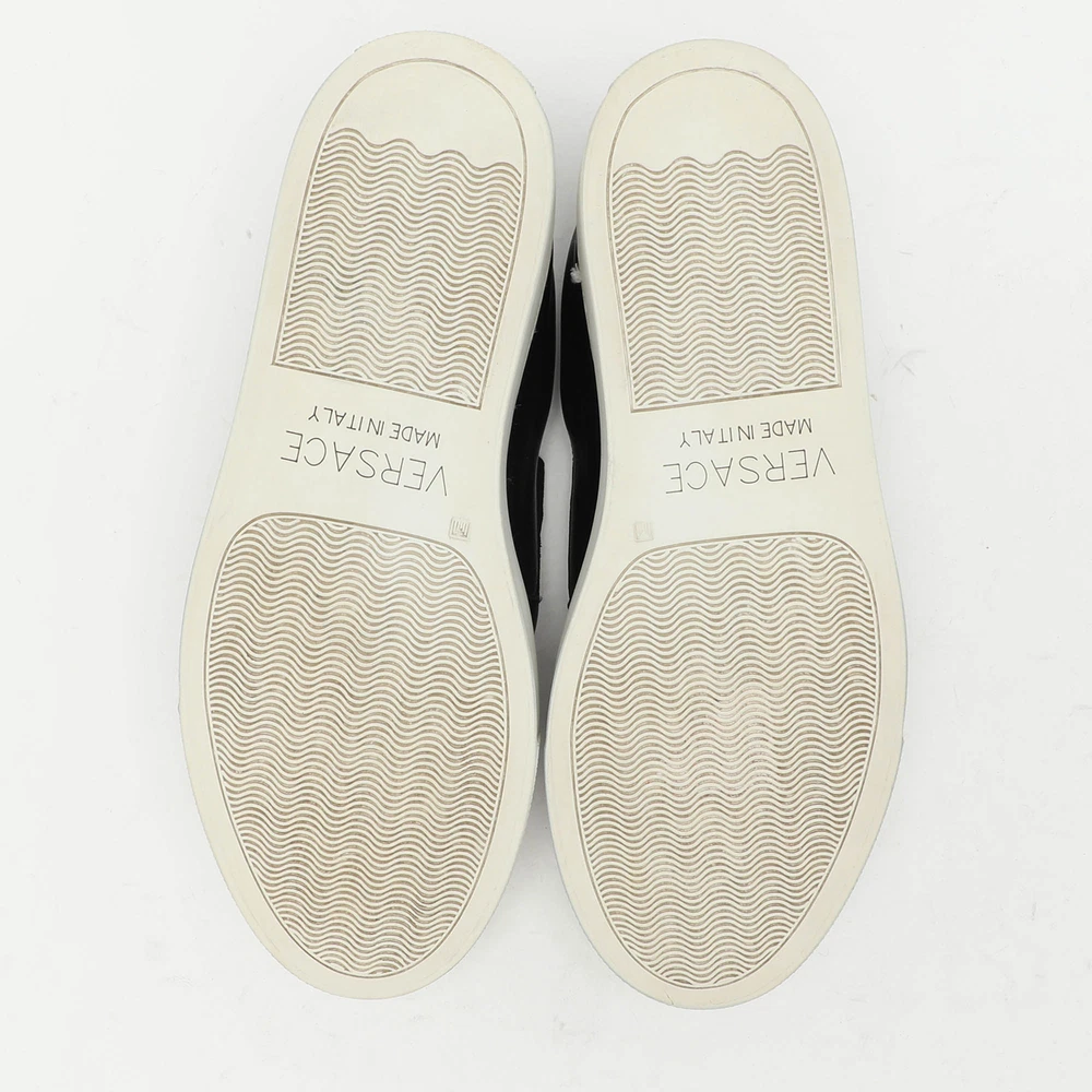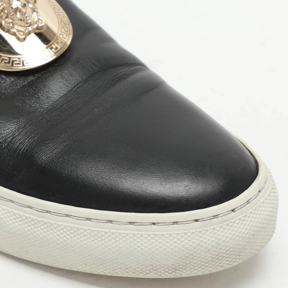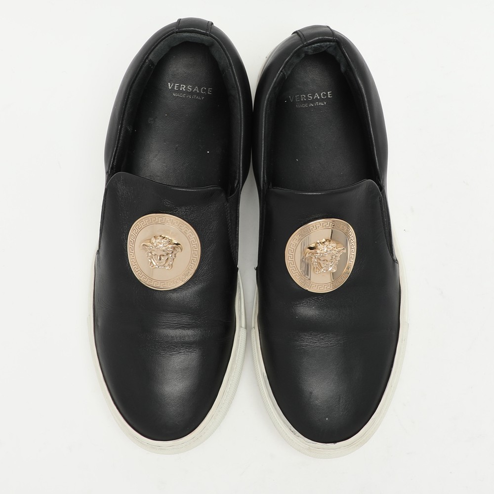 Give your outfit a chic update with this pair of designer sneakers. The creation is sewn perfectly to help you make a statement in them for a long time.Certified by The Luxury Closet - This item has gone through a detailed authentication process overseen by our experts. We offer a lifetime guarantee of authenticity on all our items. Import duties, taxes and charges are not included in the item price. These charges are the buyers responsibility. Please check with your country’s customs office to determine what these additional cost will be prior to buying. Our eBay Store About Us Contact Us Add to Favorite Sellers Versace Black Leather Medusa Slip On Sneakers Size 37 $214.5 Give your outfit a chic update with this pair of designer sneakers. The creation is sewn perfectly to help you make a statement in them for a long time. Product Details Brand Color Black Dimensions Material Leather Size 37 Outsole Width 9 cm Outsole Length 27 cm Heel Height Includes The Luxury Closet Packaging Certified by The Luxury Closet This item has gone through a detailed authentication process overseen by our experts. We offer a lifetime guarantee of authenticity on all our items. How We Check The in-house team of experts at The Luxury Closet is highly trained to verify the authenticity and the condition of the luxury products. They ensure that only 100% authentic items are put on sale.The evaluation process is unique with its own mix of assessment criteria and differs according to the category. Each item is evaluated based on the following combination of hallmarks, hardware, stitching, symmetry, material, craftsmanship, stamping, codes, hologram stickers, and packaging. Our authenticators also check if the items have been modified or amended (e.g., aftermarket diamonds, replaced batteries, repaired bags, etc.) International Buyers Import duties, taxes and charges are not included in the item price. These charges are the buyers responsibility. Please check with your country’s customs office to determine what these additional cost will be prior to buying.