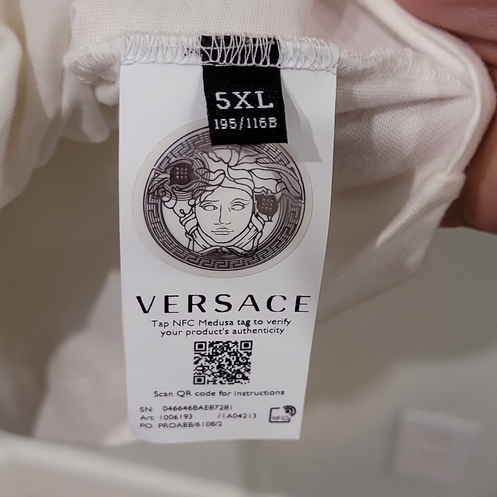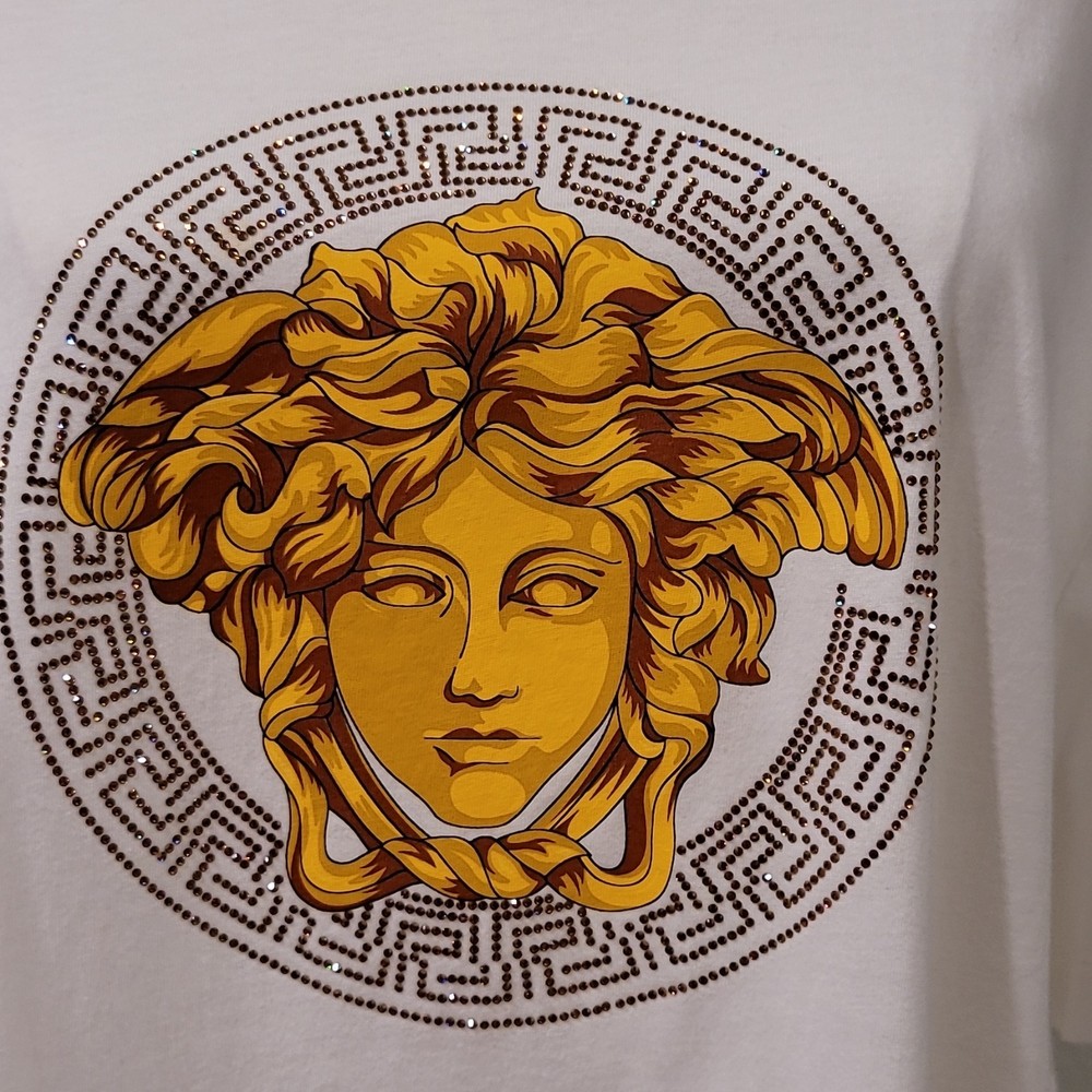 Versace Medusa Studded Logo Graphic Cotton T-Shirt Men's 5XL White Short Sleeve