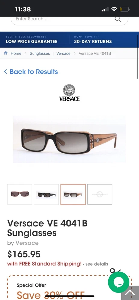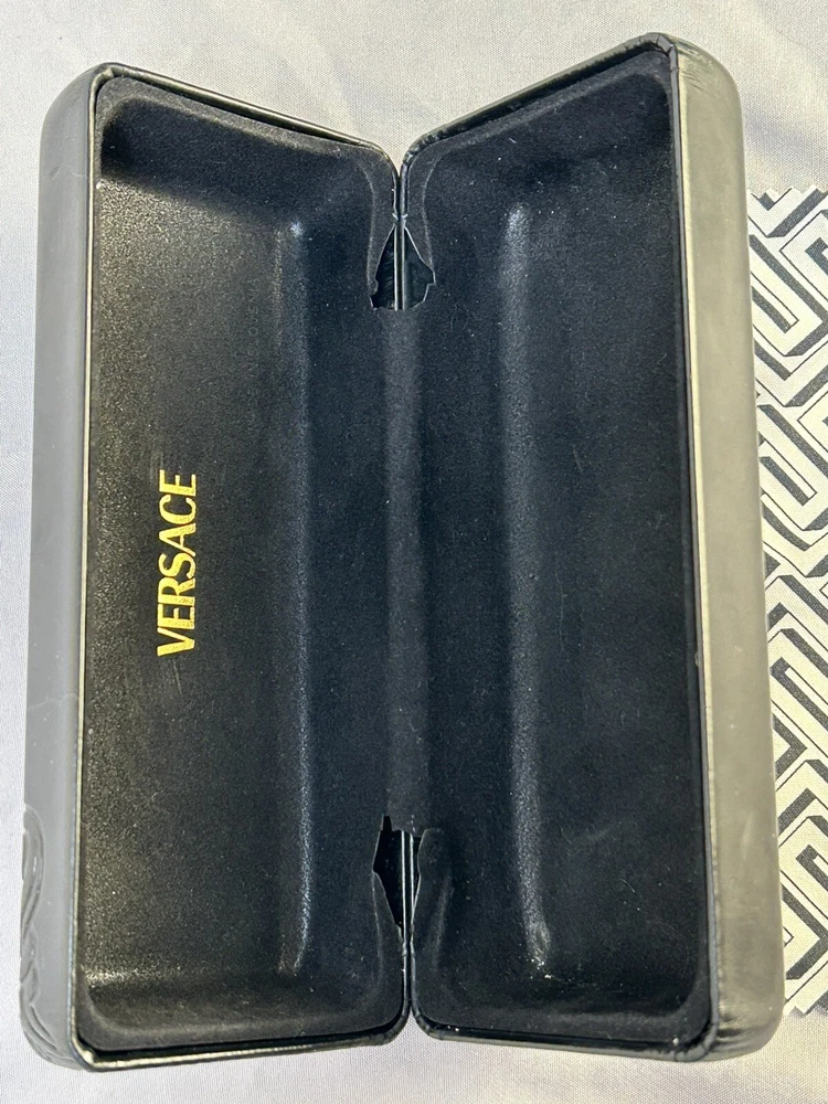 Versace VE 4041B Sunglasses Color: Black w/ Caramel Designer Case and Lens Wipe Included. Pre-owned w/ some ware. One rhinestone missing on one side. Case has some scuffs. Lenses and frame aside from rhinestone is in good condition, no scratches on lenses. Please let me know if you’d like any additional pictures.