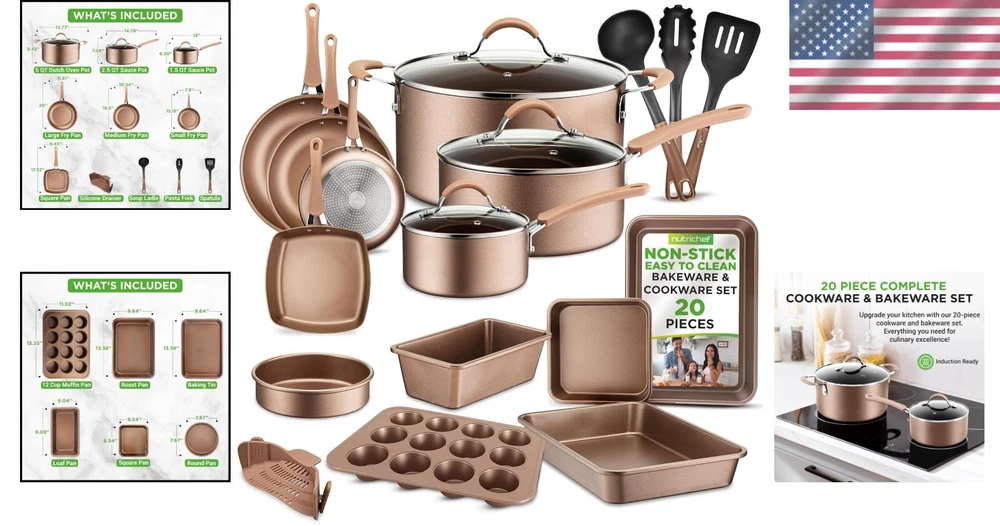 Versatile 20-Piece Cookware Set - Non-Toxic & Heat Resistant for Every Cooktop ‹ › ‹ › ‹ › ‹ › ‹ › ‹ › ‹ › ‹ › ‹ › ‹ › Versatile 20-Piece Cookware Set Transform your culinary experience with our exquisite 20-Piece Cookware Set – designed for the modern chef who values safety, functionality, and elegance in the kitchen. Features: Complete Kitchen Solution: This non-toxic cookware set includes six bakeware items, three nylon utensils, a silicone drainer, three open fry pans, two saucepots with lids, one stew pot with lid, a grill pan, and high-quality utensils. Heat Resistant: Crafted with a lacquer exterior that resists heat, this durable set boasts a long-lasting nonstick coating for effortless food transfer and easy cleaning. Cool-Touch Handles: Ergonomic and comfortable, our cool-touch handles ensure safe cooking, complemented by a sleek design with anti-scratch polished stainless-steel edges. Precision Cooking: Enjoy the convenience of transparent tempered glass lids featuring vent holes for optimal steam release and precise cooking control. Universal Compatibility: Suitable for all cooktops — gas, electric, ceramic, and induction — it effectively distributes heat for even cooking. Benefits: Durable and long-lasting nonstick coating guarantees unmatched performance. The ergonomic design promotes comfort, allowing you to create delicious meals effortlessly. Effortlessly transition from stovetop to oven with a max temperature of 500°F (260°C). Stain-resistant and easy to clean, ensuring your kitchen retains its pristine beauty. Comes complete with heat-resistant utensils, reinforcing the brilliant design of this kitchen essential. What's Included: (6) Bakeware Sets (3) Nylon Utensils (1) Silicone Drainer (3) Open Fry Pans (8”, 10”, 12”) (2) Sauce Pots with Lids (6.3” - 1.5 QT; 7.9” - 2.5 QT) (1) Stew Pot with Lid (9.4” - 5 QT) (1) Grill Pan (9.45”) Enduring Quality at its Best: Invest in cookware that stands the test of time. Our 20-piece cookware set is constructed from reinforced pressed aluminum, engineered nylon, and tempered glass for unmatched cooking performance. Whether you’re a culinary novice or a seasoned chef, this versatile collection enhances every kitchen journey. Prepare for gourmet evenings and joyful gatherings. Order your 20-Piece Cookware Set today and elevate your cooking sanctuary to new heights of elegance and efficiency! Shipping Free & Fast Shipping - We offer free shipping to most of the USA with a normal delivery time of 3-7 days. However, due to the current situation, additional delivery time (up to 3 weeks) may be required for some items. Alternative Carriers - We may use alternative carriers (e.g. USPS, FedEx, UPS, etc.) to ensure your package arrives safely and on time. Due to the use of multiple carriers, we are unable to provide a tracking number automatically. Handling Time - Orders are processed and shipped within 1-2 business days of receiving cleared payment. Shipping Restrictions - Shipping to Alaska, Hawaii, Puerto Rico, Guam, and other US territories may incur shipping charges or delivery restrictions. Please contact us before ordering, or your order can be refunded/cancelled. State Restrictions - There may be restrictions based on your state of purchase. For example, certain items may not be shipped to California due to state regulations. Contact for Tracking Updates - If you require tracking updates or have any concerns about the delivery of your order, please feel free to contact us, and we will be happy to assist you. Return 30-Day Hassle-Free Returns - We want you to be completely satisfied with your purchase. If you are not, you can return the item within 30 days of receiving it for a full refund or exchange. Easy Return Process - To start a return, simply contact us and we will provide you with a prepaid return shipping label and detailed instructions. Restocking Fee - There are no restocking fees for returns. However, the buyer is responsible for return shipping costs if the return is not due to a seller's error. Refund Processing Time - Refunds will be processed within 5 business days of receiving the returned item in its original condition. Payment We accept all major credit cards, PayPal, and Apple Pay for your convenience. Your payment information is secure and encrypted to ensure a safe and seamless transaction. Please complete your payment within 3 days of purchase to avoid any delays in shipping. Feedback Your feedback is extremely important to us. We strive to provide the best products and customer service possible. If you are satisfied with your purchase, please take a moment to leave us a positive review. If you have any concerns or issues with your order, please contact us before leaving negative feedback. We are committed to resolving any problems and ensuring your satisfaction. Contact Us If you have any questions or concerns, please feel free to reach out to our customer support team. You can contact us through the eBay messaging system. We are available Monday to Friday, 9:00 am to 5:00 pm EST, and we will do our best to respond to your inquiry within 24 hours. Thank you for supporting our small family business! UPC: Not Set Unit Quantity: 16.34 lb Stove Type Compatibility: Electric,Gas,Induction,Ceramic Material: Aluminum,Glass,Silicone,Nylon Features: Dishwasher Safe,Easy Clean,Non-Stick,Transparent,With Lid,Cool-Touch Handles,Heat Resistant Set Includes: Frying Pan,Grill Pan,Lid,Saucepan,Baking Tins,Bakeware Set,Silicone Drainer,Nylon Utensils,Stew Pot Type of Oven: Electric,Gas,Induction,Ceramic Brand: Unbranded Surface Coating: Non-Stick Color: Matte Gold Type: Cookware Set Item Width: Not Set Item Length: Not Set Item Diameter: 12 in MPN: Not Set Country/Region of Manufacture: Not Set Manufacturer Warranty: Not Set Shape: Round Item Height: Not Set Number of Items in Set: Twenty-Piece Item Depth: 4 in Heat Resistance: 500°F Model: Not Set Item Weight: 16.