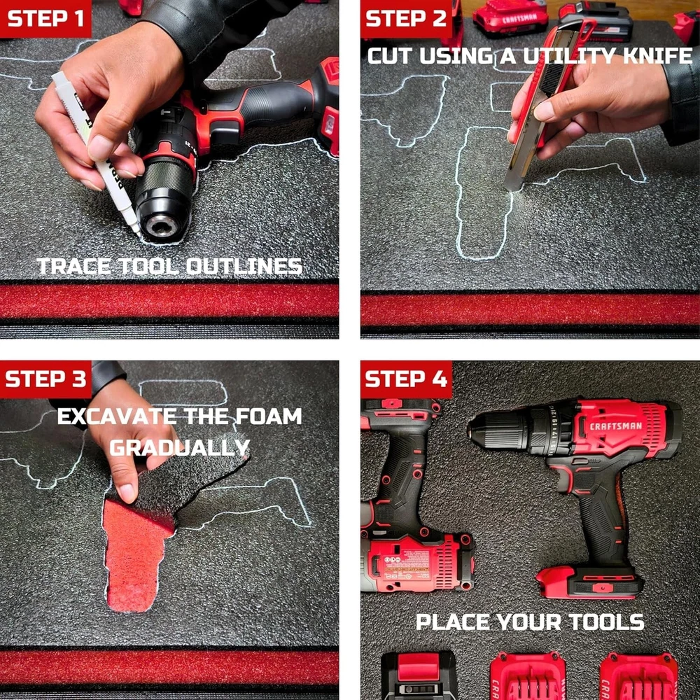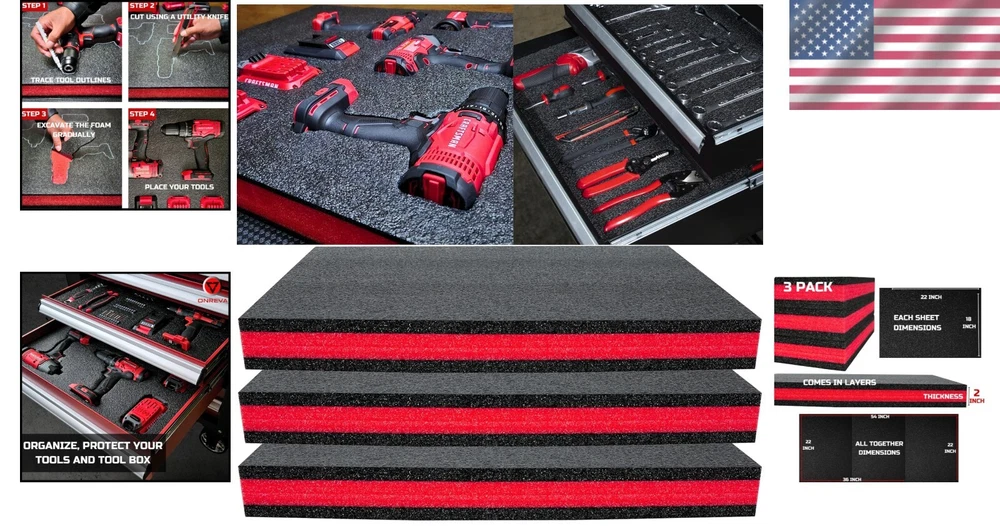 Versatile 22x18x2 Toolbox Foam Inserts for Improved Tool Protection & Display ‹ › ‹ › ‹ › ‹ › ‹ › ‹ › ‹ › ‹ › ‹ › ‹ › ‹ › Versatile Toolbox Foam Inserts Dimensions: 22" x 18" x 2" (each sheet) | Set of 2 Sheets | Material: PE Polyethylene Foam | Color: Red with Black Toolbox Shadow Organizers Features: Protects Tools & Toolbox: Provides cushioning and protection, preventing damage during transit or storage. Adjustable Size & Easy Customization: Easily cut to fit your tools, ensuring a perfect fit and organized workspace. Easy to Cut & Install: Simple to cut with basic tools, making installation a breeze. Strong & Reliable: Made of high-quality, durable polyethylene foam that withstands fading and breaking. Versatile Use: Ideal for various toolboxes and applications, from DIY projects to model making. Benefits: Maximizes protection for your cherished tools. Keeps your workspace organized and professional-looking. Reduces time searching for tools with designated spots. Odorless foam for a pleasant and user-friendly experience. Compatible with popular brands like Craftsman, Snap-on, Husky, Milwaukee, DeWalt, and US General. Why choose our Toolbox Foam Inserts? Transform your toolbox into a masterpiece of organization and protection. Our versatile toolbox foam inserts not only safeguard your tools but also elevate your workspace to professional standards. With easy cutting and customization options, you can create a personalized storage solution that fits your specific needs. Made of high-quality materials, these inserts ensure a long-lasting, reliable organization system for your valuable tools. Upgrade your toolbox today with our premium foam inserts—the perfect solution for avid DIYers and professionals alike! Shipping Free & Fast Shipping - We offer free shipping to most of the USA with a normal delivery time of 3-7 days. However, due to the current situation, additional delivery time (up to 3 weeks) may be required for some items. Alternative Carriers - We may use alternative carriers (e.g. USPS, FedEx, UPS, etc.) to ensure your package arrives safely and on time. Due to the use of multiple carriers, we are unable to provide a tracking number automatically. Handling Time - Orders are processed and shipped within 1-2 business days of receiving cleared payment. Shipping Restrictions - Shipping to Alaska, Hawaii, Puerto Rico, Guam, and other US territories may incur shipping charges or delivery restrictions. Please contact us before ordering, or your order can be refunded/cancelled. State Restrictions - There may be restrictions based on your state of purchase. For example, certain items may not be shipped to California due to state regulations. Contact for Tracking Updates - If you require tracking updates or have any concerns about the delivery of your order, please feel free to contact us, and we will be happy to assist you. Return Please see our eBay Return Policy. Thank you. Payment We accept all major credit cards, PayPal, and Apple Pay for your convenience. Your payment information is secure and encrypted to ensure a safe and seamless transaction. Please complete your payment within 3 days of purchase to avoid any delays in shipping. Feedback Your feedback is extremely important to us. We strive to provide the best products and customer service possible. If you are satisfied with your purchase, please take a moment to leave us a positive review. If you have any concerns or issues with your order, please contact us before leaving negative feedback. We are committed to resolving any problems and ensuring your satisfaction. Contact Us If you have any questions or concerns, please feel free to reach out to our customer support team. You can contact us through the eBay messaging system. We are available Monday to Friday, 9:00 am to 5:00 pm EST, and we will do our best to respond to your inquiry within 24 hours. Thank you for supporting our small family business! UPC: Not Set Item Width: Not Set Item Length: Not Set Item Height: Not Set Item Diameter: 22 inch Item Weight: 3.74 lb Unit Quantity: 3 Features: Adjustable,Drawer Liner,Foam Inserts,Tool Organizer,Waterproof,Durable,Easy to Cut,Customizable,Protective,Non-Odorless,Convenient Installation,Versatile Use,Compatible with Various Brands,Quality Material Brand: Unbranded Type: Tool Storage Bin Number of Items: 1 Number of Drawers: 0 Material: Polyethylene Size: Large Capacity: 5 kg Model: Not Set MPN: Not Set Color: Red Finish: Unfinished Country/Region of Manufacture: Not Set Manufacturer Warranty: Not Set Unit Type: lb
