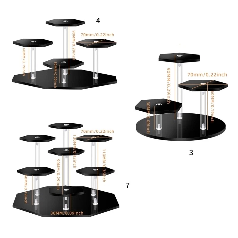 Versatile Acrylic Stand for Displaying Collectibles and Fashion Accessories Features: Display your collectible figurines and jewelry with this acrylic stand, for showcasing multiple items at once. The hexagonal structure allows for efficient organization and visibility of each item. Suitable for collectors of figurines, jewelry enthusiasts, booth vendors, and exhibition participants. Whether it's for home display cabinets, store showcases, trade shows, or art exhibitions, this versatile acrylic stand is a great choice. Crafted from durable and easy to acrylic material, this display stand provides a practical and stylish solution for showcasing your beloved items. Specifications: Acrylic Type:3 Positions Jewelry Rack/4 Positions Jewelry Rack/7 Positions Jewelry Rack (Optional) Color:Colorful/Transparent/Black Tray Size:Approx.70mm/2.75inches Package Includes: 1Piece Acrylic Jewelry Display Rack note: Please allow 1-2cm error due to manual measurement. Please make sure you do not mind before you bid. Due to the difference between different monitors, the picture may not reflect the actual color of the item. Thanks!