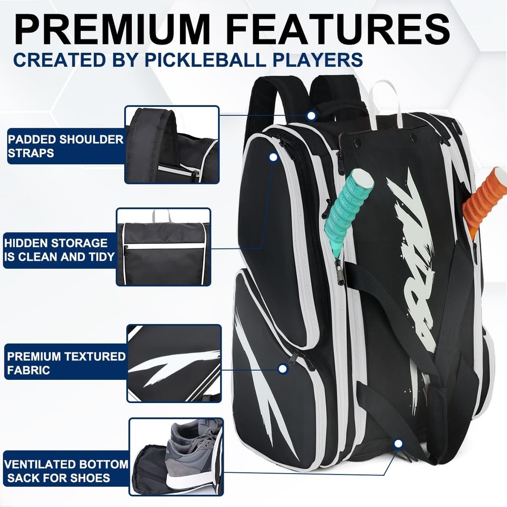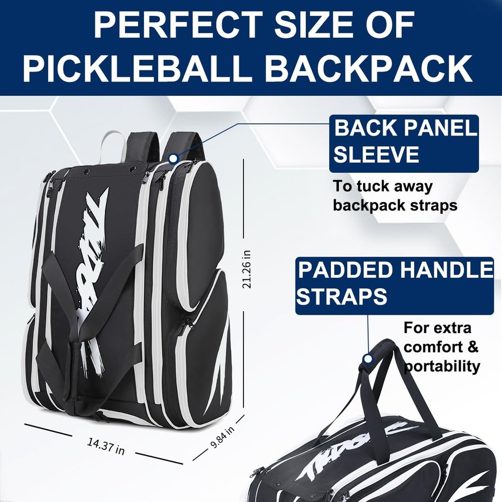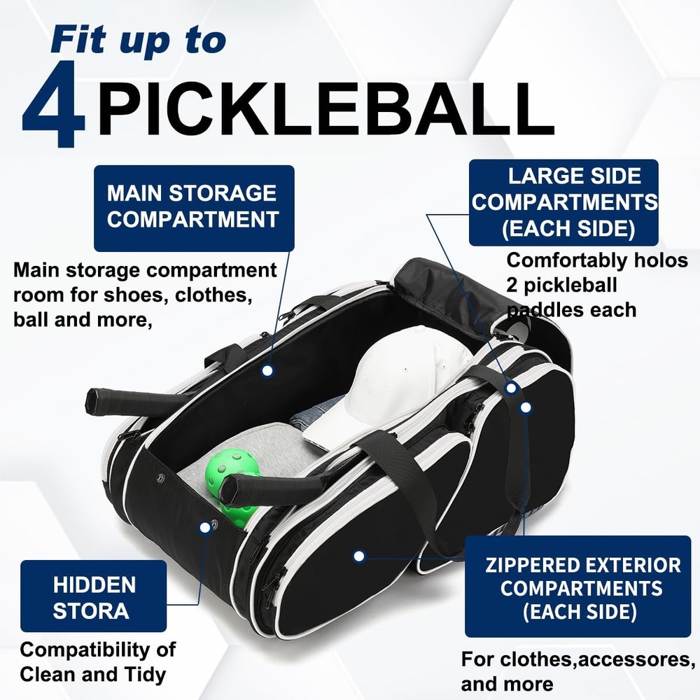 [ -Good Quality,Good Products! ] We love technological innovation,because technology can charge lives We have so many years of car dash cam experience, so we understand your needs We are committed to provide you high-quality products with best price from our factory [ Why Choose US? ] Hidden backpack straps and shoe compartment ensure high-portability carrying Great fence hook : secure the bag to prevent it even at sport ground Protecting your items in wherever Seamless loop protecting : infinite loop using, nerver miss any moment [ specifications ] Model : Pickleball bag/ Pickleball Pickleball backpack Exterior Zippered Compartments : 8 pockets Interior Pockets : 4 pockets Product Size : 15.5*9.84*22 inches(L*W*H) [ Warm Tips ] Pickleball bag or travel backpack is suit for pickleball sport and travel [ Packing Details ] 1* Fasion Pickleball Bag/Pickleball Backpack 1* 24H Customer Service 【Hidden Backpack Straps and Perfect Shoe Compartment】 : The pickleball Backpack feature enables easy hidden storage is clean ang tidy, except, the Shoe Compartment can Keep your shoes or dirty clothes separate and easily clean the shoe compartment to maintain cleanliness. 【Exclusive Pickleball Bag】 : Designated pockets for 4 paddles, room for more, comfortably holds 2 pickleball rackets in each of the 2 specific compartments including wide and elongated pickleball racquets. spacious main compartment has room for several more. 【Large Capacity Pickleball Bag】 : Pickleball bag for travel features 8 exterior zippered compartments & 4 interior pockets. So Keep your important pickleball equipment with you as you travel 【Designed For Pickleball Players】 : Thermal insulated racquet compartments protect from extreme heat, ventilated bottom sack for shoes, sleeve for balls, fence hook, & soft lined pockets for valuables. This pickleball paddle bag is truly for the players who think of the extra details! 【Classy, Chic Pickleball Bag】 : pickleball tournament bag is an elegant Large Pickleball Backpack, use it as an everyday bag / travel bag / pickleball bag / sport backpack