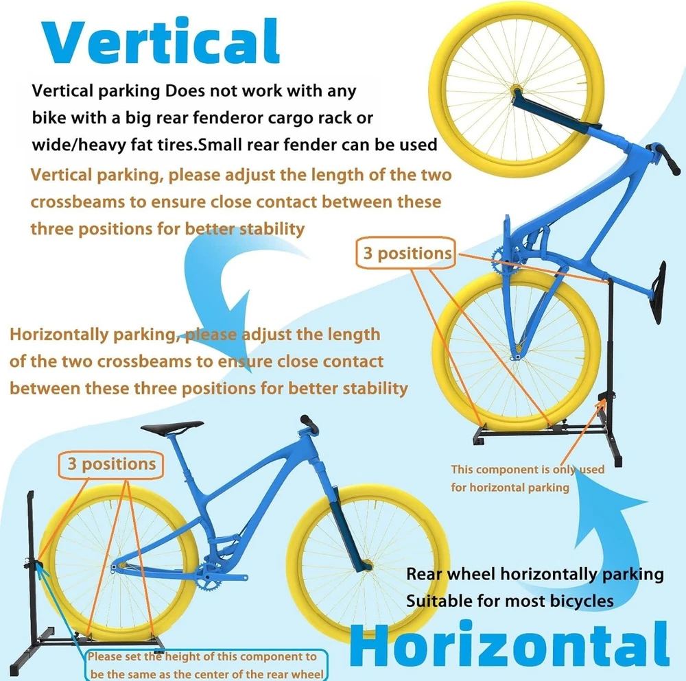 This bike stand is a total game-changer for small spaces! It’s sturdy, easy to install, and keeps my garage clutter-free. Love that it works both vertically and horizontally—perfect for storing two bikes neatly. The metal construction feels durable, and it holds my bike securely without wobbling. Highly recommend for anyone needing smart, space-saving storage!