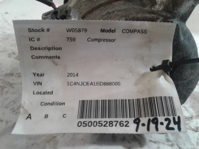 Powered by Frooition All Items See our eBay store for more great items >> Shop Categories All Categories AC Compressor Classic Style Vertical Rear Door Handle Fits 08-17 COMPASS 1894833 Item Description This listing is for an A/C compressor removed from the vehicle pictured. It is guaranteed to be in good working condition. eBay compatibility may be incorrect. See below for fitment information and any notes pertaining to this specific part. Feel free to contact us if you have any questions. Thanks for looking! Donor Vehicle: Year: 2014 Model: COMPASS Stock #: W05879 Mileage: 121000 Notes: OFF READY 6MO.1YEAR.3YEAR. LABOR This part will only fit: CALIBER 09-12 COMPASS 08 MT, from 1/04/08 COMPASS 09-10 MT COMPASS 11-16 COMPASS 17 classic style (vertical rear door handle), PATRIOT 08 MT, from 1/04/08 PATRIOT 09-10 MT PATRIOT 11-17 For more parts from this vehicle, CLICK HERE . About Us About Us Payment Shipping Terms Returns About Us We are a family-owned business with over 30 years in the used car parts industry. We're proud to provide excellent quality used auto parts at famously discounted prices! Over time we have grown to 4 locations in Harrison, MI, Lansing, MI, Saint Johns, MI, and Toledo, OH. We are here to serve you Monday thru Friday 8 a.m. to 5 p.m. EST. If you have any concerns or questions, please feel free to message us here on eBay. We will normally get back to you within 12 hours during the work week. Payment Payment We accept Paypal, all major credit cards and cash (if you are picking up the item). Payment is required within 2 days of winning a listing. If payment is not made after 2 days, an unpaid item case will be opened. Shipping Shipping Most items will ship ground with UPS or USPS. We may use other carriers at our discretion. In some instances, freight orders will require a business address with a loading dock or forklift. A good working phone number is required for all orders. Local pickup is also an option on any order. Our 4 locations are open Monday thru Friday from 8 a.m. to 5 p.m. EST. Please check with us before driving out to make sure we have the part ready at the location nearest to you. Terms Terms Most items include a 90-day warranty (unless otherwise indicated). This coverage is included on all new or used parts unless otherwise stated in the listing or on the front of the invoice. This warranty is non-transferable. Labor is not covered under any circumstance unless a separate labor warranty is purchased. Extended warranties are also available. Please see our website for complete details and exclusions. Returns Returns We allow 60 days for returns. If you ordered the incorrect part or simply do not need it, you are responsible for the origin and return shipping. Helpful Links Add to Favorite Sellers Sign up to Newsletter View Feedback Contact Seller Visit seller's eBay Shop About Seller Page More Items! View more great items! Powered by Frooition Frooition | No-js Template | eBay design, eBay store design, eBay shop design, eBay template design, eBay listing design (ver:froo_no_js) This listing is currently undergoing maintenance, we apologise for any inconvenience caused.