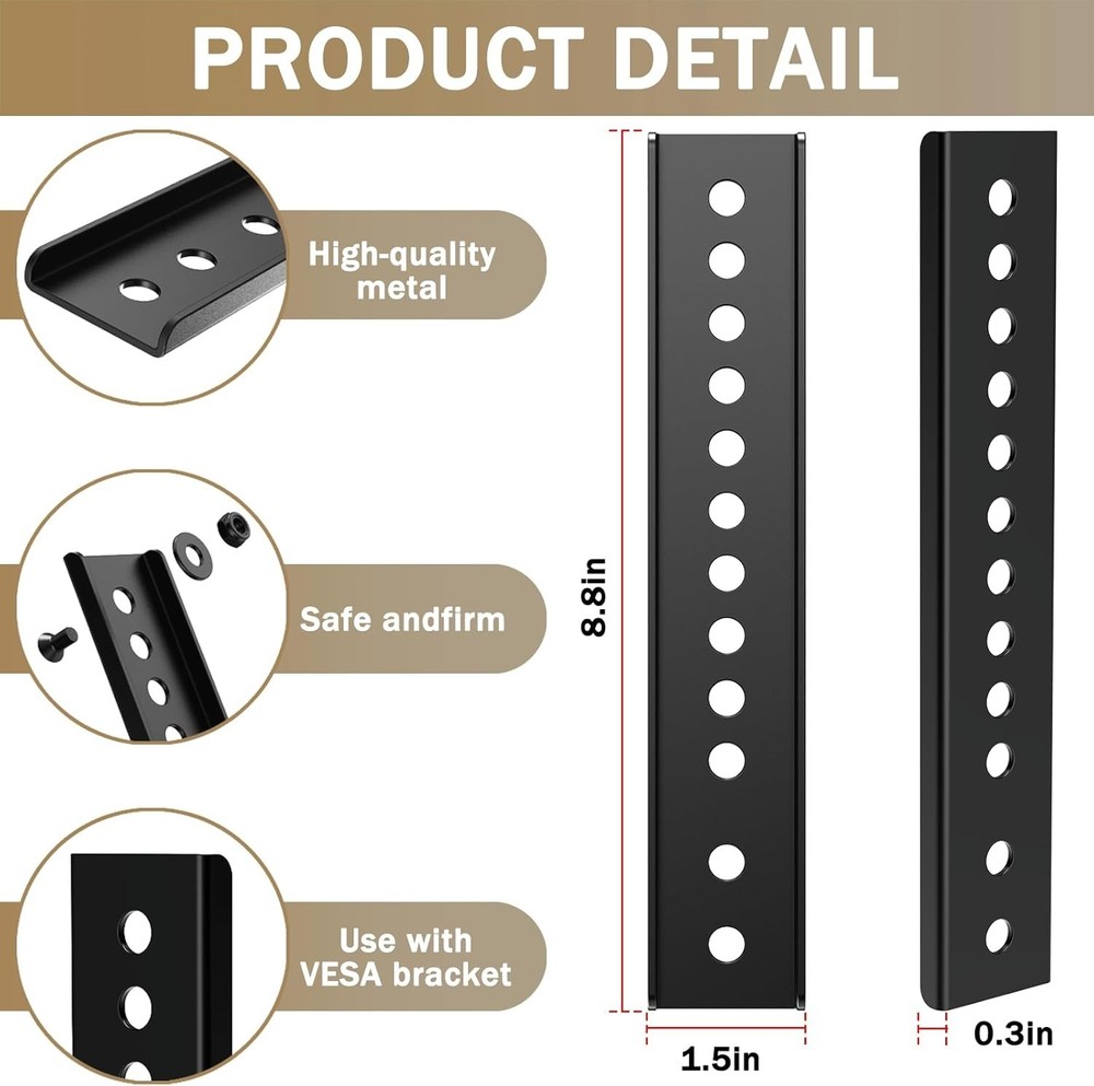 Vertical VESA Extender Plate Bracket Kit TV Mount Extension Bracket Designed ... sure to pre-verify the compatibility of these TV mount extension brackets with your TV and mounting system. They are specifically designed for use with vertical VESA plate TV mounts and are not compatible with other types of mounts. This ensures the stand will function correctly and safely in your setup Reliable Materials: The TV wall mount extension bracket is made of solid steel, ensuring a secure fit with your TV. This sturdy material offers superior scratch resistance and durability, guaranteeing the longevity of the stand and providing a reliable support system for your TV Easy To Install: The installation of the Vertical VESA Mount Extender Bracket is very simple and does not require complicated procedures. The kit contains all the components needed for assembly, allowing you to mount your TV quickly and easily by attaching the stand to a VESA Shipping We offer FREE shipping on all orders! We ship within Three business days of payment, usually sooner. We use a selection of shipping services such as UPS, FedEx, USPS etc. We only ship to the lower 48 states, no APO/FPO addresses or PO Boxes allowed. Local pickups and combined shipping options are not provided at this time. Return You can return a product for up to 30 days from the date you purchased it. Any product you return must be in the same condition you received it and in the original packaging. Please keep the receipt. Customer satisfaction is very important to us. If you have any problem with your order, please contact us and we will do our best to make you satisfied. Contact Us If you have any queries, please contact us via ebay. We usually respond within 24 hours on weekdays. Please visit our eBay store to check out other items for sale! Thank you for shopping at our store.