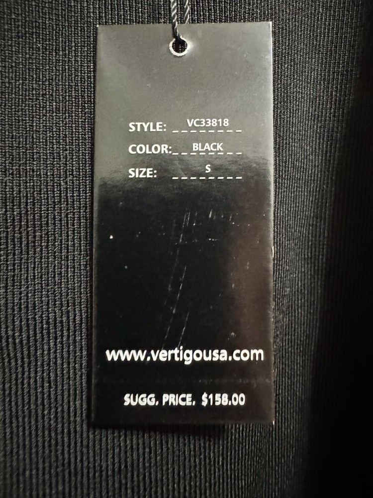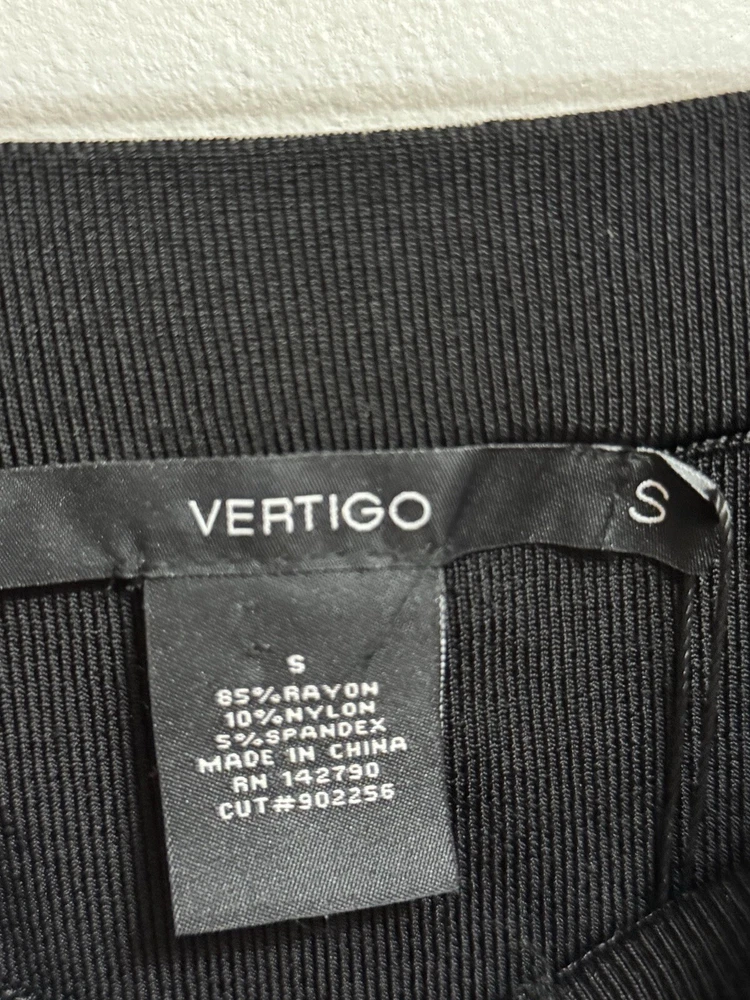 Elevate your wardrobe with this chic and stylish Vertigo black skirt. The skirt is perfect for any occasion, whether it's a night out with friends or a formal event. The skirt features a pleated design, giving it a unique and elegant look. It is made of a blend of nylon, spandex, and rayon, making it comfortable to wear and easy to care for. The skirt is a size small, mini length, and is suitable for regular size types. The skirt is brand new with tags, ensuring that it is of the highest quality. The skirt is perfect for women who want to make a statement with their fashion choices. Add this Vertigo black skirt to your wardrobe today!