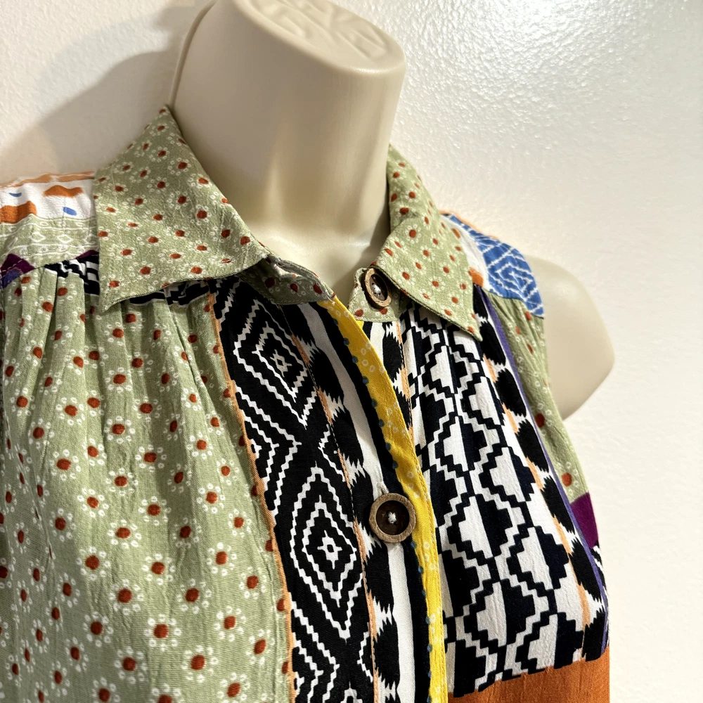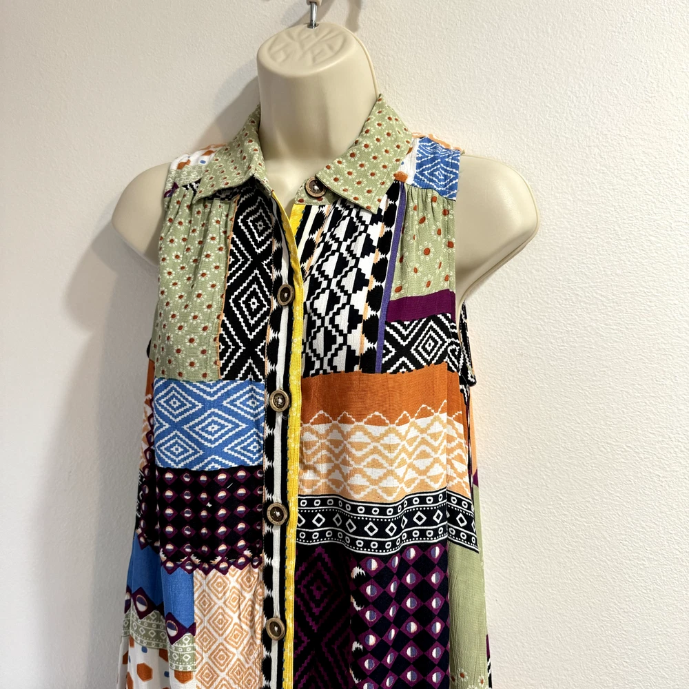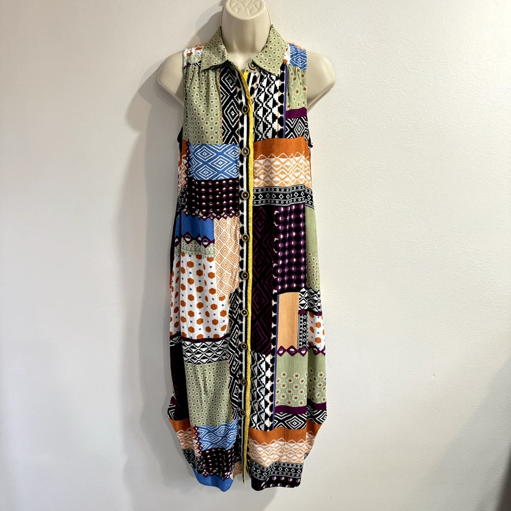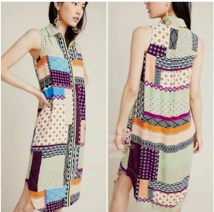Thank you for visiting my listing! Looking for measurements? Please see last photo. Brand: Anthropologie Condition: excellent Size: 0 Everyway patchwork shirt dress. Button front with wooden buttons. Machine wash. *E7