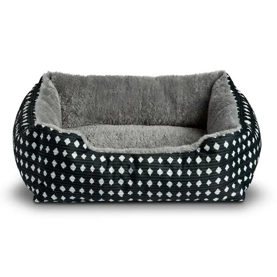 Vibrant Life Cuddler Small Dog or Cat Bed, Black 19" × 15" surrounds pets with plush comfort and supportive bolstered edges that cradle heads and paws. The cozy sleep surface and lightweight recycled fiberfill cushion joints without flattening, while the compact footprint fits crates, shelves, or snug floor corners. Weighing under one pound, the bed lifts out effortlessly for machine washing to keep nap spots fresh. Treat petite companions to restful luxury with Vibrant Life Cuddler Small Dog or Cat Bed, Black 19" × 15". Vibrant Life Cuddler Small Dog or Cat Bed, Black 19" × 15" Soft plush interior for warmth Bolstered walls add security Eco-friendly recycled fiberfill Machine washable for easy care Lightweight 0.86 lb design Perfect for cats and toy breeds