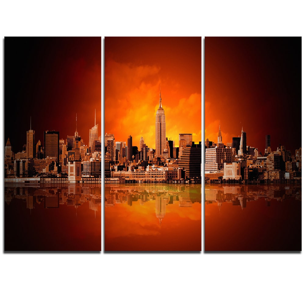 This beautiful Photography Canvas Art is printed using the highest quality fade resistant ink on canvas. Every one of our fine art giclee canvas prints is printed on premium quality cotton canvas, using the finest quality inks which will not fade over time. Each giclee print is stretched tightly over a 1 inch wood sub frame ensuring the canvas is taught and does not buckle. This canvas art print is gallery-wrapped (the design continues on the sides) , giving it a real art gallery feel. All of our canvas prints are carefully packaged with bubble wrap, fragile labeling and sturdy boxes to ensure a safe delivery. Every canvas print arrives ready to hang on the wall, with the hanging kits included Period: ContemporaryOrientation: HorizontalSubject: Photography, Cityscapes, Matching Set, Free Shipping Over $49.99* Details New York City Panorama in Red Light - Cityscape Canvas print Product Description: This beautiful Photography Canvas Art is printed using the highest quality fade resistant ink on canvas. Every one of our fine art giclee canvas prints is printed on premium quality cotton canvas, using the finest quality inks which will not fade over time. Each giclee print is stretched tightly over a 1 inch wood sub frame ensuring the canvas is taught and does not buckle. This canvas art print is gallery-wrapped (the design continues on the sides) , giving it a real art gallery feel. All of our canvas prints are carefully packaged with bubble wrap, fragile labeling and sturdy boxes to ensure a safe delivery. Every canvas print arrives ready to hang on the wall, with the hanging kits included PeriodContemporary OrientationHorizontal SubjectPhotography, Cityscapes, Matching Set, Modern, Decorative, Horizontal TypeCanvas Art, Fine Art, Fine Art Giclee, Print, Wrapped MaterialCanvas, Cotton, Wood StylePhotography, Cityscapes, Matching Set, Modern, Decorative, Horizontal Number of Pieces3 FramedFramed Exact ColorRed SizeLarge ColorRed