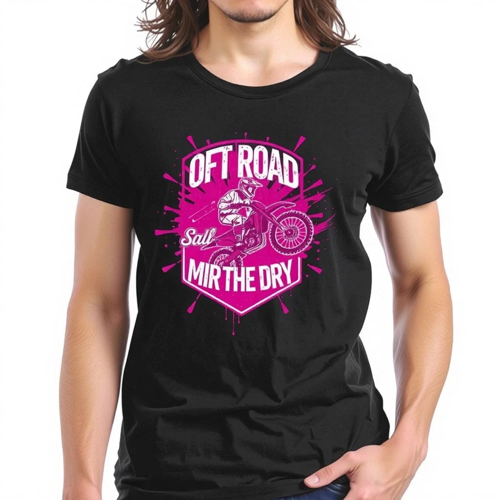 Vibrant Pink Motorcycle Graphic T-Shirt - Bold Motocross Design