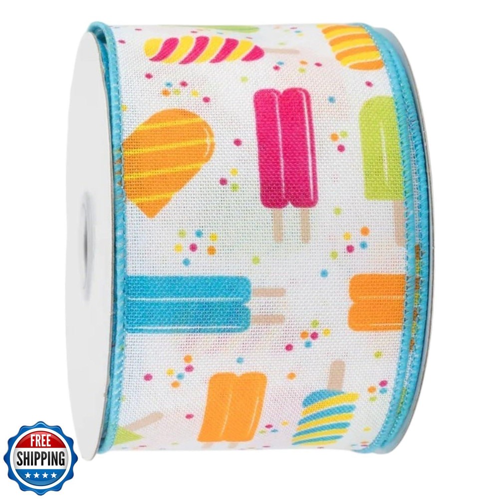Popsicle Print Wired Edge Ribbon for Summer Bows, Wreaths, Gift Wrap, Crafts, and Party Decorations (2.5" Inches Wide x 10 Yards - White, Pink, Orange, Yellow, Multi - Royal Burlap) Features Popsicles Patterned Canvas Ribbon 2.5" wide by 10 yards (30 feet in length) Includes wired edge 100% Polyester Shipping Free & Fast Shipping: We offer free shipping to most of the USA with a normal delivery time of 3-7 days. However, due to the current situation, additional delivery time (up to 3 weeks) may be required for some items. Alternative Carriers: We may use alternative carriers (e.g., USPS, FedEx, UPS) to ensure your package arrives safely and on time. Due to the use of multiple carriers, we are unable to provide a tracking number automatically. Handling Time: Orders are processed and shipped within 1-2 business days of receiving cleared payment. Shipping Restrictions: Shipping to Alaska, Hawaii, Puerto Rico, Guam, and other US territories may incur shipping charges or delivery restrictions. Please contact us before ordering, or your order can be refunded/cancelled. State Restrictions: Certain items may not be shipped to California due to state regulations. Contact for Tracking Updates: If you require tracking updates or have any concerns about the delivery of your order, please feel free to contact us, and we will be happy to assist you. Return Policy 30-Day Hassle-Free Returns: If you are not completely satisfied with your purchase, you can return the item for free within 30 days of receiving it for a full refund or exchange. Easy Return Process: Contact us, and we will provide you with a prepaid return shipping label and detailed instructions. No Restocking Fee: There are no restocking fees for returns. However, the buyer is responsible for return shipping costs if the return is not due to a seller"s error. Refund Processing: Refunds will be processed within 1 business day of receiving the returned item in its original condition. Feedback Your feedback is extremely important to us. We strive to provide the best products and customer service possible. If you are satisfied with your purchase, please take a moment to leave us a positive review. If you have any concerns or issues with your order, please contact us before leaving negative feedback. We are committed to resolving any problems and ensuring your satisfaction. Contact Us If you have any questions or concerns, please feel free to reach out to our customer support team. You can contact us through the eBay messaging system. We are available Monday to Friday, 9:00 am to 5:00 pm EST, and we will do our best to respond to your inquiry within 24 hours. Thank you for supporting our small family business!