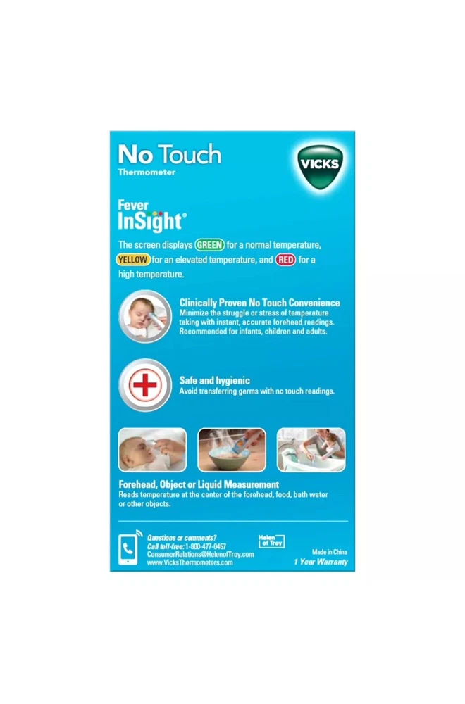 This Vicks No-Touch 3-in-1 Thermometer is the perfect addition to your baby safety kit. With its LCD display and infrared/non-contact features, you can quickly and easily check the temperature of your baby's forehead, food, and bath without worrying about touching anything. The thermometer is designed for ease of use and comes with a convenient carrying case for on-the-go use. You can trust the Vicks brand for quality and reliability, and this model, 21520HTD, is no exception. It is perfect for parents who want to keep their babies safe and healthy. This thermometer is ideal for use in a variety of settings, including at home, in the office, and on vacation.