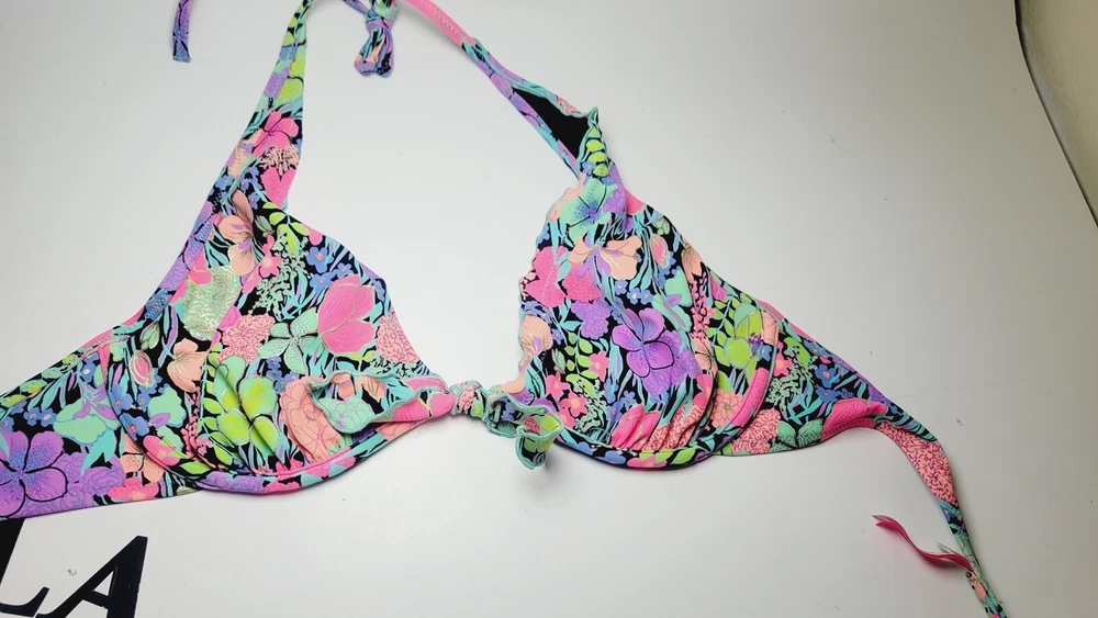 Make a splash with this stunning Victorias Secret halter bikini top. Designed in a medium size, this pushup piece boasts an underwired fit that enhances your curves, while the multicolor design, featuring a bold animal print, flower, and solid patterns, makes a bold fashion statement. Crafted from luxurious satin material, this bikini top is both comfortable and stylish, perfect for a day at the beach or pool. With a vintage touch and a sexy plunge neckline, this bikini top from the Victorias Secret Bombshell/Plunge product line is sure to turn heads. The size type is regular, and it is perfect for women who want to make a fashion statement with their swimwear. Don't miss out on the chance to add this stylish and comfortable bikini top to your swimwear collection. * PLEASE VIEW ALL PICTURES AS THEY ARE PART OF THE DISCRIPTION AND PLEASE READ ITEM DETAILS AS THEY ARE PART OF THE DISCRIPTION * PLEASE CONTACT ME WITH ANY QUESTIONS OR CONCERNS * PAYMENT IS DUE AT TIME Of PURCHASE *If there are any problems with the items please notify me right away so we can resolve the issue. Any questions please feel free to ask, I will respond to all questions within 24-48 hours (usually less but allow 48 hrs please) Payment PayPal, please keep in mind when paying with e-check through PayPal it takes an additional 5-7 days for check to clear. International Buyers – Please Note: Import duties, taxes, and charges are not included in the item price or shipping cost. These charges are the buyer's responsibility. Please check with your country's customs office to determine what these additional costs will be prior to bidding or buying. Customer Service I am an honest seller and aim to provide the best service I possibly can offer. I want you to be 100% Happy with your purchase and my service! 5 STAR Feedback is important to me. If you have any questions at all with your purchase, please contact me. I am quick to respond to any question or comment. I am human and do occasionally make mistakes but it’s nothing that can’t be fixed CHECK MY OTHER LISTINGS