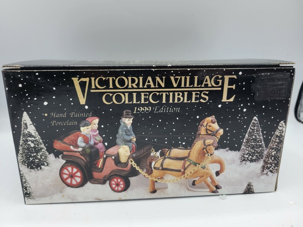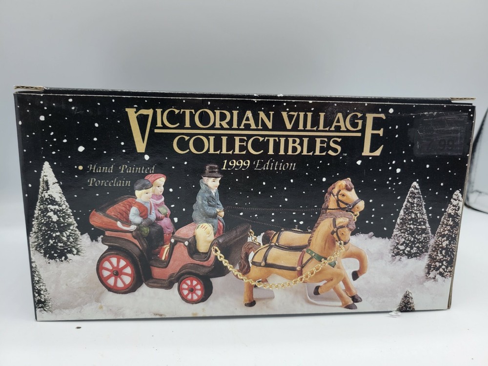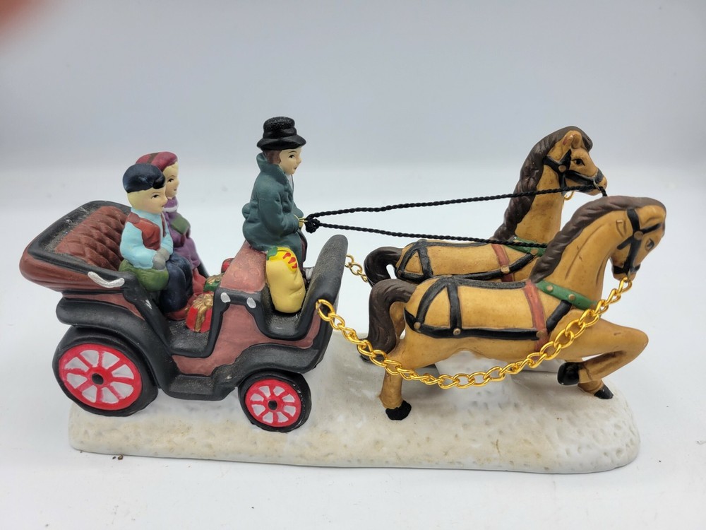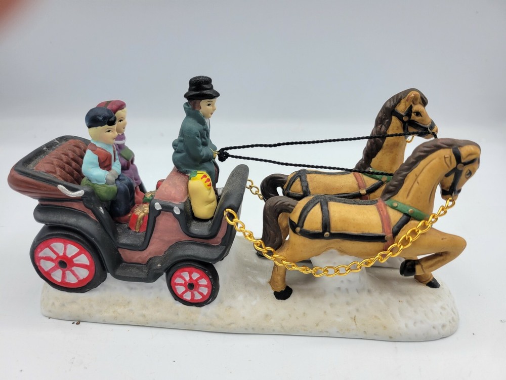Add a touch of elegance to your Christmas Village with this beautiful porcelain horse carriage. The intricate hand-painted design showcases a stunning horse with an animal print pattern that pulls a luxurious carriage. The rectangular shape and multicolor scheme make it a timeless piece for any room during the holiday season. This Heartland brand Christmas Village accent piece is from the Alpine Village collection with a Victorian style. It was manufactured in the year 2000 and is made of high-quality porcelain material. It's perfect for collectors and adults who appreciate fine craftsmanship. Celebrate the holiday in style with this exquisite horse carriage that will surely be a highlight of your Christmas Village.