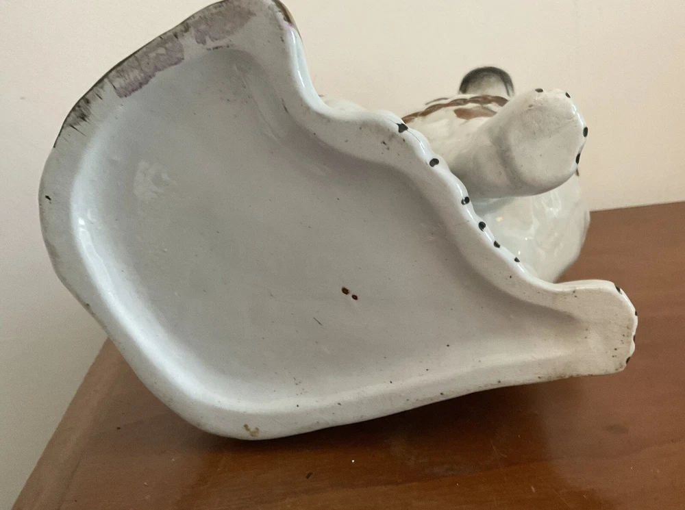 Victorian STAFFORDSHIRE COPPER LUSTRE SPANIEL DOG Split/Separate Leg Left Hand dog No cracks or chips Iconic ornament Any problems please get back to me I have a good reputation Thank you for lookingWe have moved to a smaller house and 40 years of accumulated items need to be sold in excellent condition Swift postage UK Seller see picture Thank you for looking