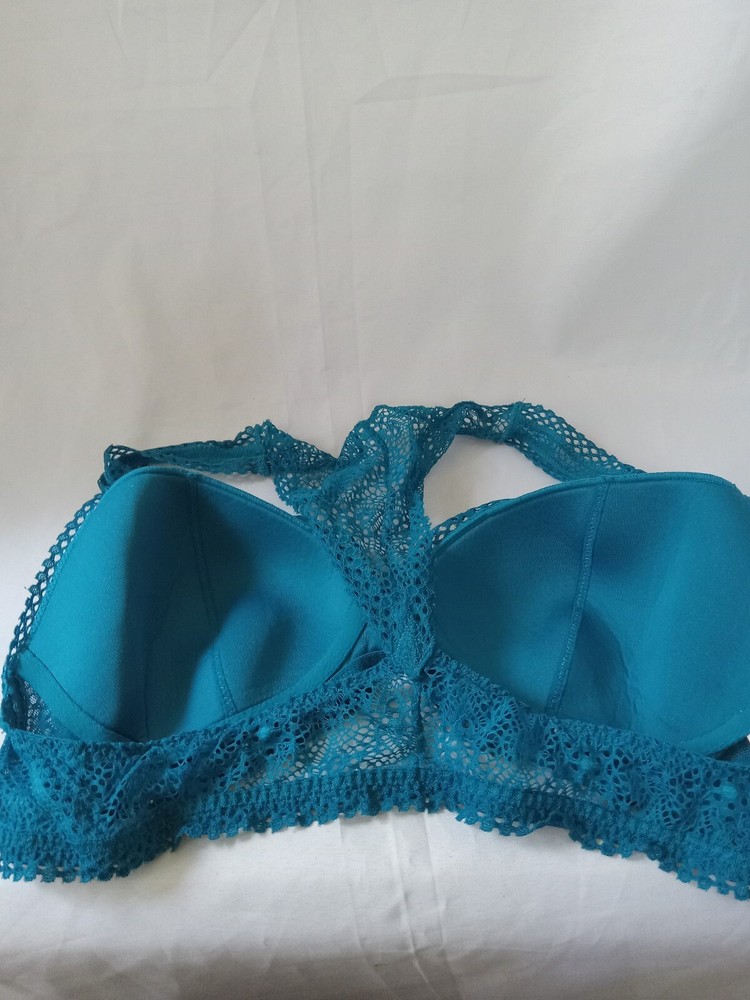 Experience the perfect blend of comfort and elegance with this Victoria's Secret T-back bra in a stunning teal hue. Designed for the modern woman, it offers a large padded cup to provide ample support and a flattering silhouette. The lacy detailing adds a touch of romance to your lingerie drawer, making it a delightful choice for any occasion. Crafted with the ease of a pull-on style and finished with a charming teal color, this bra is an essential addition to your wardrobe. The sleek design ensures a seamless look under any outfit, while the high-quality construction promises lasting shape and color vibrancy. Indulge in the blend of style and function that only Victoria's Secret can offer.