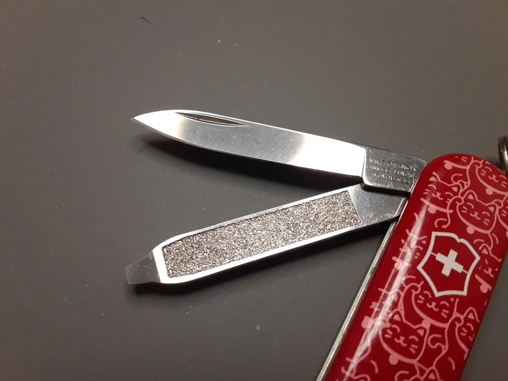 Brand: Victorinox Modified Item: No Lock Type: Slipjoint Type: Pocketknife Color: Multi Dexterity: Ambidextrous Blade Edge: Plain Original/Reproduction: Original Blade Material: Stainless Steel Number of Blades: 1 Opening Mechanism: Manual Custom Bundle: No Tools: Nail File, Scissors Blade Type: Pen Country/Region of Manufacture: Switzerland Model: Classic Non-Domestic Product: No Blade Range: Under 2.75in. Year: 2011 Handle Material: Plastic
