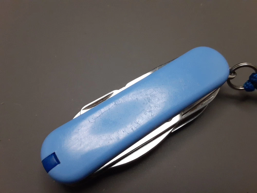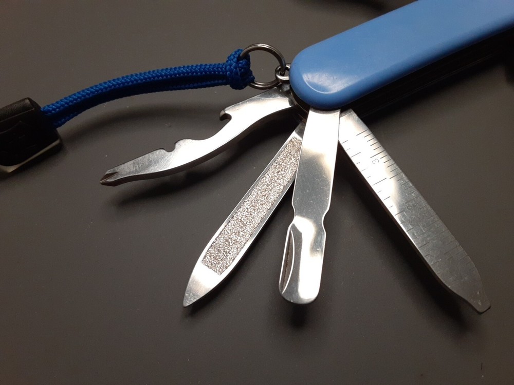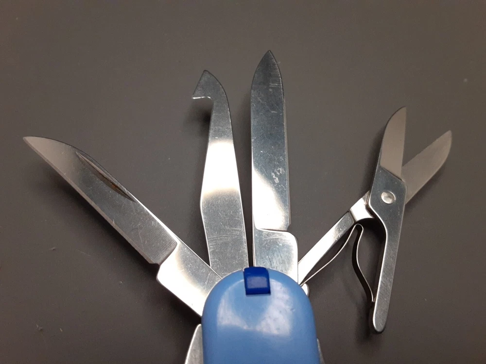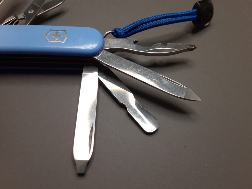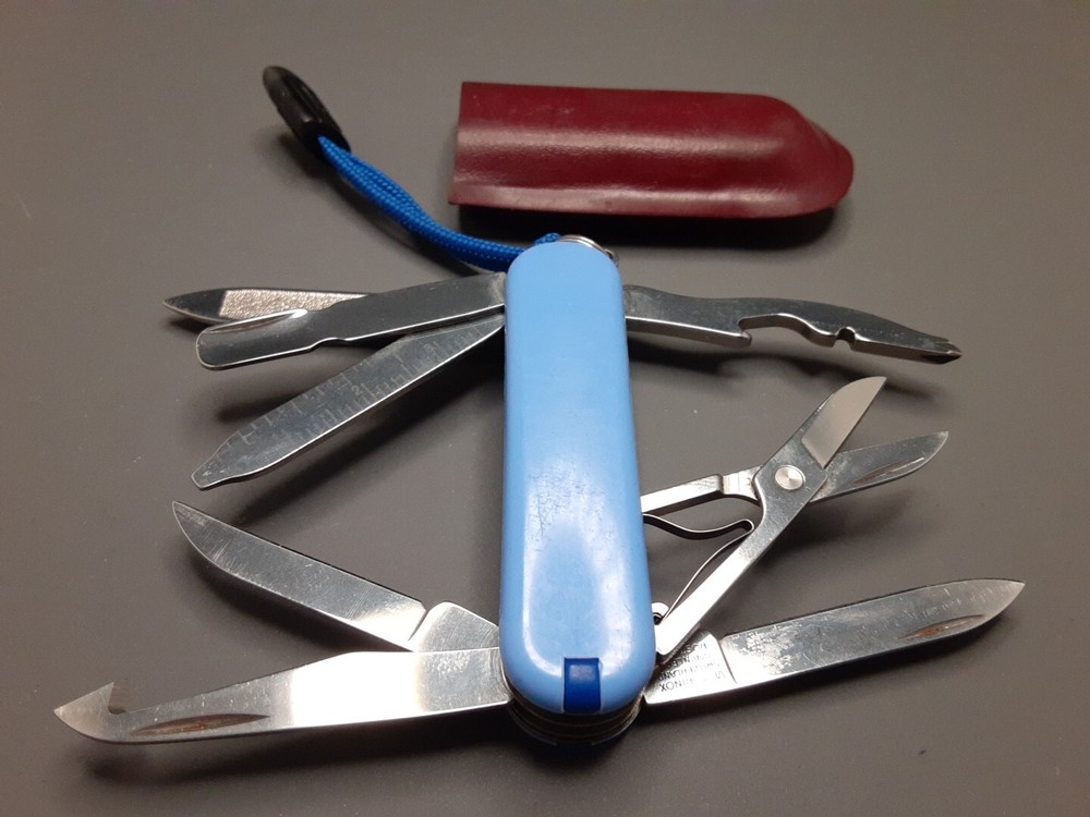 Knife is in very good condition. Blades, tools and scales show signs of use such as light scratches. Lock up on all tools are strong with no play. All imperfections, flaws and defects are shown in pictures. Please see all pictures and use zoom function to see full condition of Item. Item May Need To Be Cleaned Further. Blade May Need To Be Sharpened.