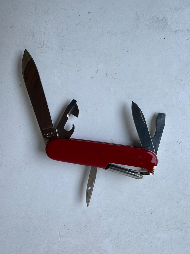 Victorinox Officier Suisse Pocket Knife Silver Red Stainless Steel Lightweight Description Victorinox Officier Suisse Pocket Knife Silver Red Stainless Steel Lightweight. Product Detail • Brand : Victorinox • Model : Victorinox Officier Suisse • Blade Color : Silver • Type : Pocket Knife Please message me if you have any questions.
