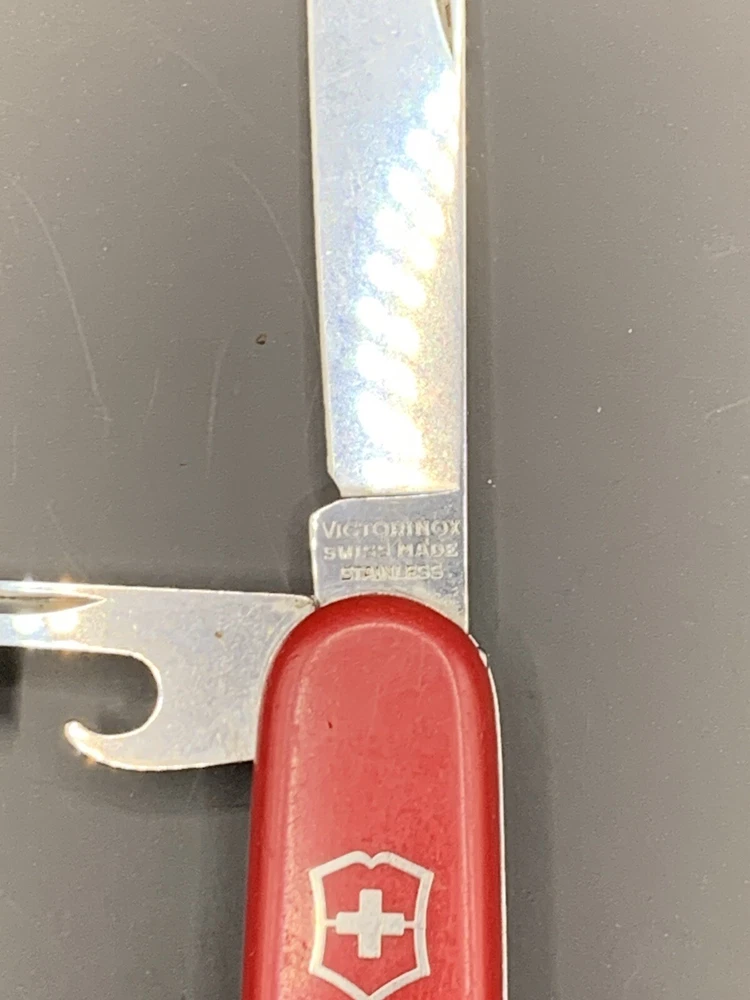 Used Victorinox knife. Handles have some wear and the blades may need to be sharpened. See pictures for overall cosmetic condition. By purchasing you affirm that you are of legal age and aware of all applicable laws.