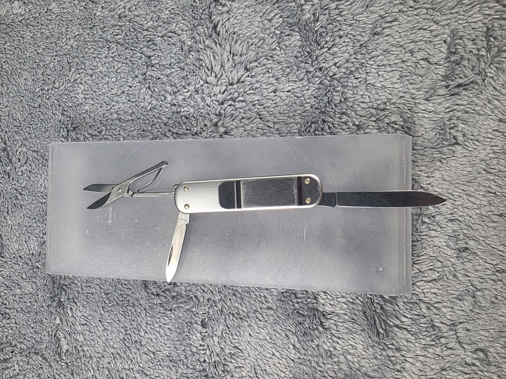 Victorinox Swiss Army Alox Pocket Knife with Scissors, Nail File, and Pocket Clip in Silver finish Condition: Good used condition – light wear on handle and minor marks on blade, as seen in photos Features genuine Victorinox Swiss Army construction and signature red shield logo on handle Includes three main tools: plain edge knife blade, nail file with tip, and precision spring-loaded scissors Durable ribbed aluminum Alox scales provide classic style and extra grip Pocket clip attached for convenient everyday carry (EDC) Compact and lightweight design perfect for keychain or pocket Swiss made quality, known for reliable multi-tool performance Item is in gently used pre-owned condition. Item may contain normal signs of wear, blemishes, discoloration, creases and/or other signs of distress. Photos depict the exact item you will receive. Please refer to photos for full details prior to purchasing. Items are cleaned in accordance with eBay's standards and policies. Fast Free USPS Shipping - 30 Day Returns - Hats Ship in a Box Great for daily tasks, traveling, or as a collectible