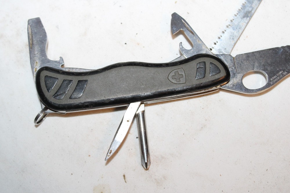 Victorinox Switzerland First Aid Survival Knife 6pc Folding Knife Lock-back design Model No. 09 Great pre-owned knife. Refer to pictures. PLEASE e-mail me with any questions or for additional pictures. FREE SHIPPING in the US. Thank you for your interest and have a great day.