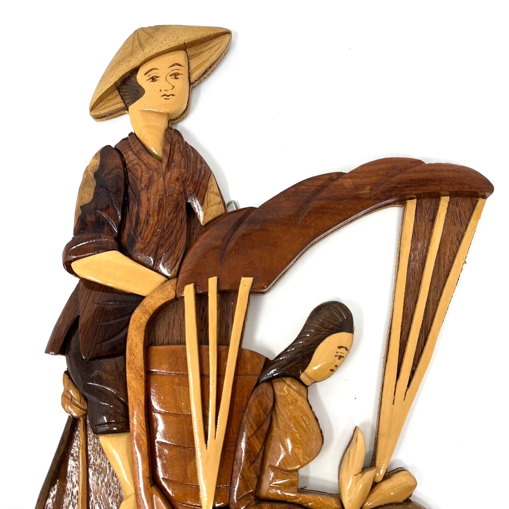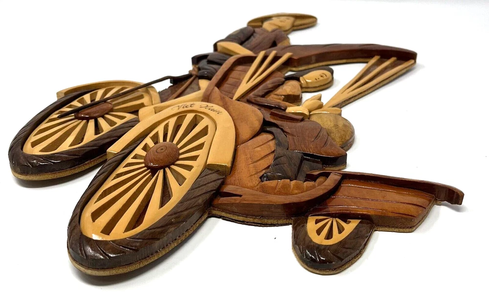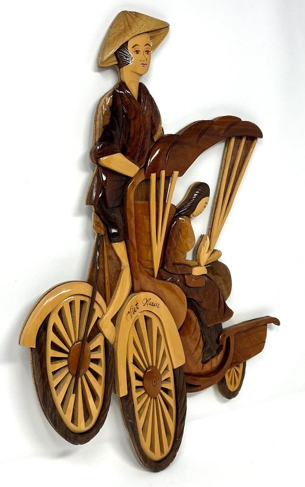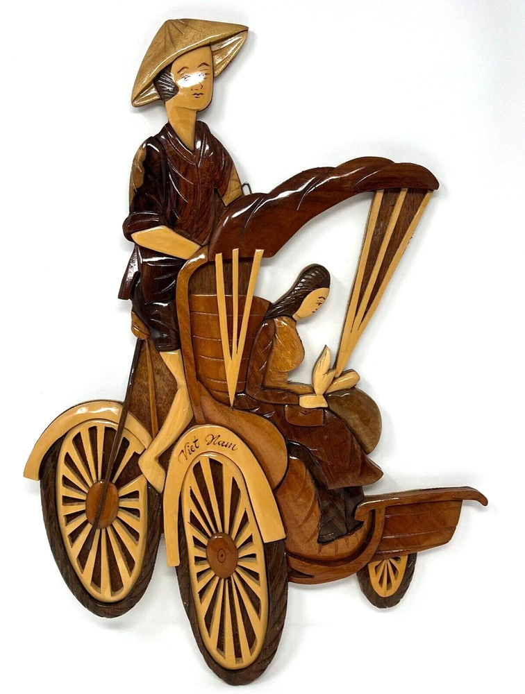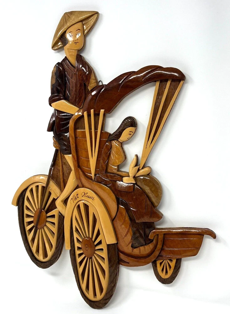 Vietnam “Rickshaw Couple” Woodcraft Wall Decor Measure approx. 12.5" w x 17.5" h x 1" d Very neat and unique piece! Please see photos.