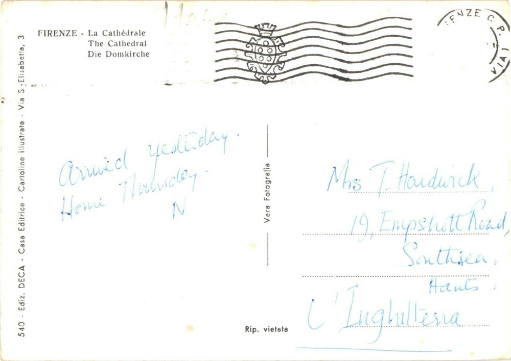 View of Cathedral of Santa Maria del Fiore, Florence, Italy Postcard We sell a wide variety of vintage ephemera, postcards, and other amazing paper collectibles. Please see pictures for condition and email with any questions. Thank you for checking out our items and store: The Vintage Ephemera & Postcards Shop 440-43