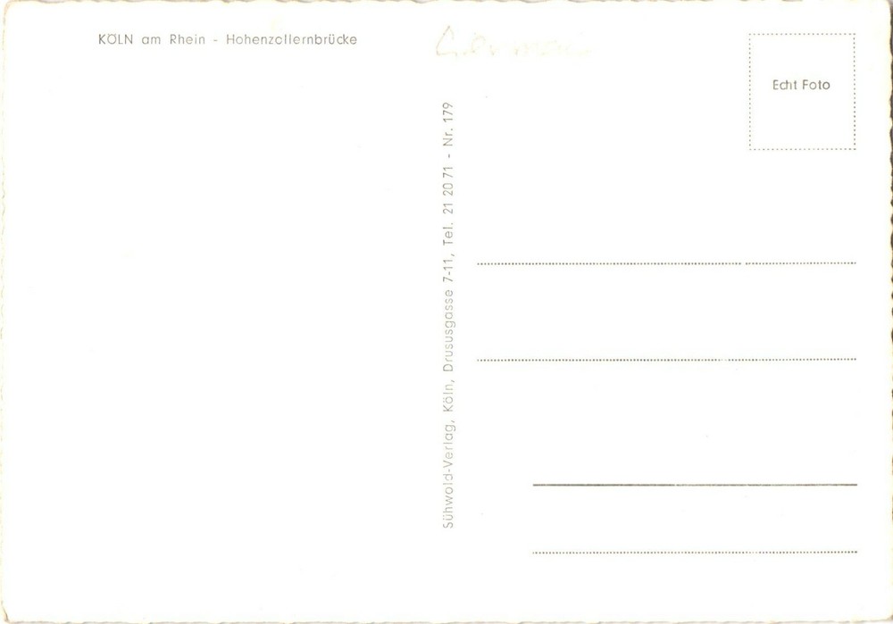 View of Hohenzollern Bridge, Cathedral, Cologne On The Rhine, Germany Postcard We sell a wide variety of vintage ephemera, postcards, and other amazing paper collectibles. Please see pictures for condition and email with any questions. Thank you for checking out our items and store: The Vintage Ephemera & Postcards Shop 430-01